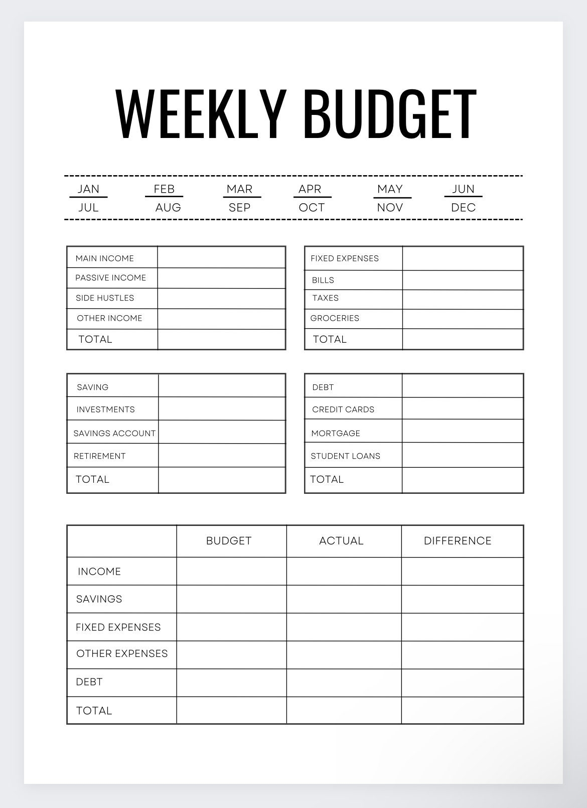 Weekly Budget Planner Template Printable Family Budget Weekly