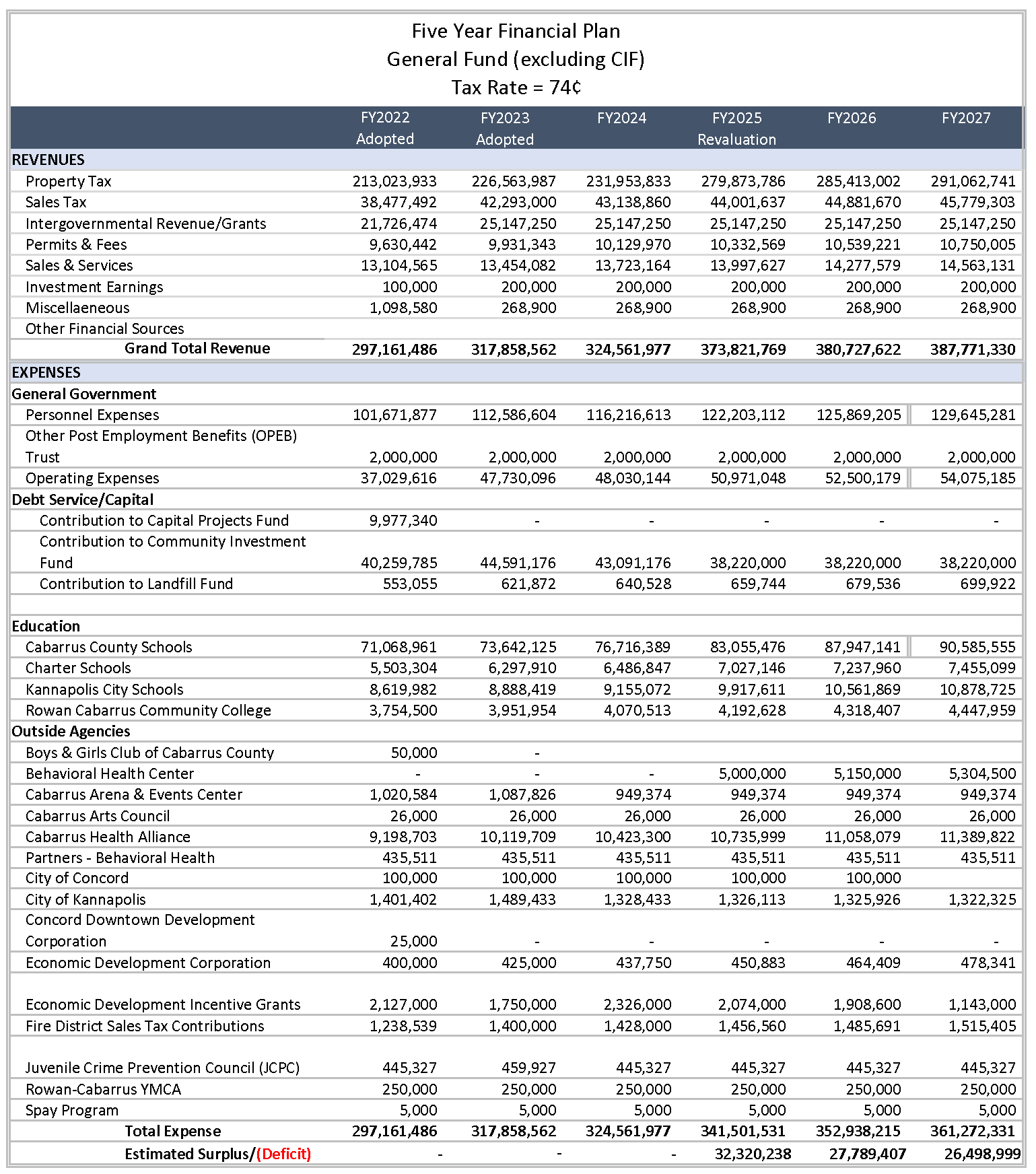 Five Year Financial Plan