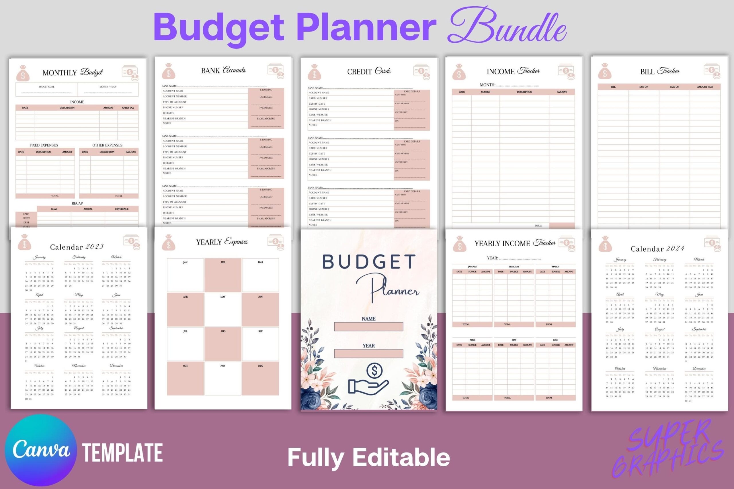 Give You 65 Pages Budget Planner Editable Canva Template
