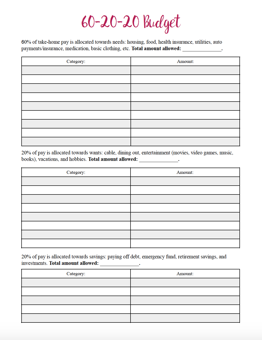 65 20 15 Budget Template
