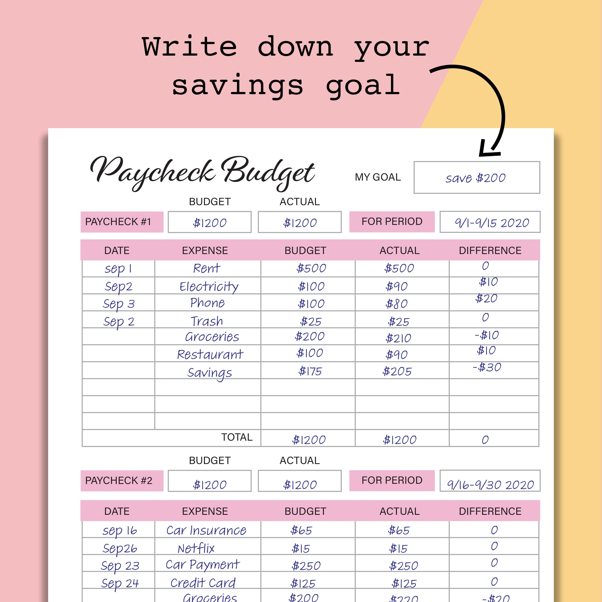 A6 Paycheck To Paycheck Budget Printable Zero Based Budget