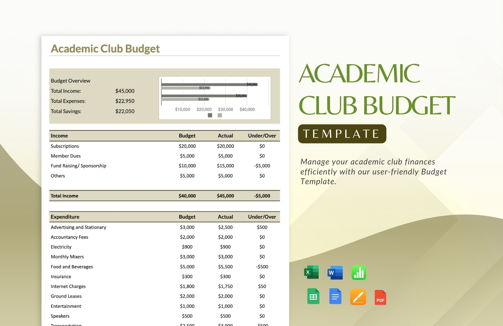 Academic Club Budget Template In Word Excel Google Sheets Google Docs Apple Pages Apple Numbers PDF Download Template