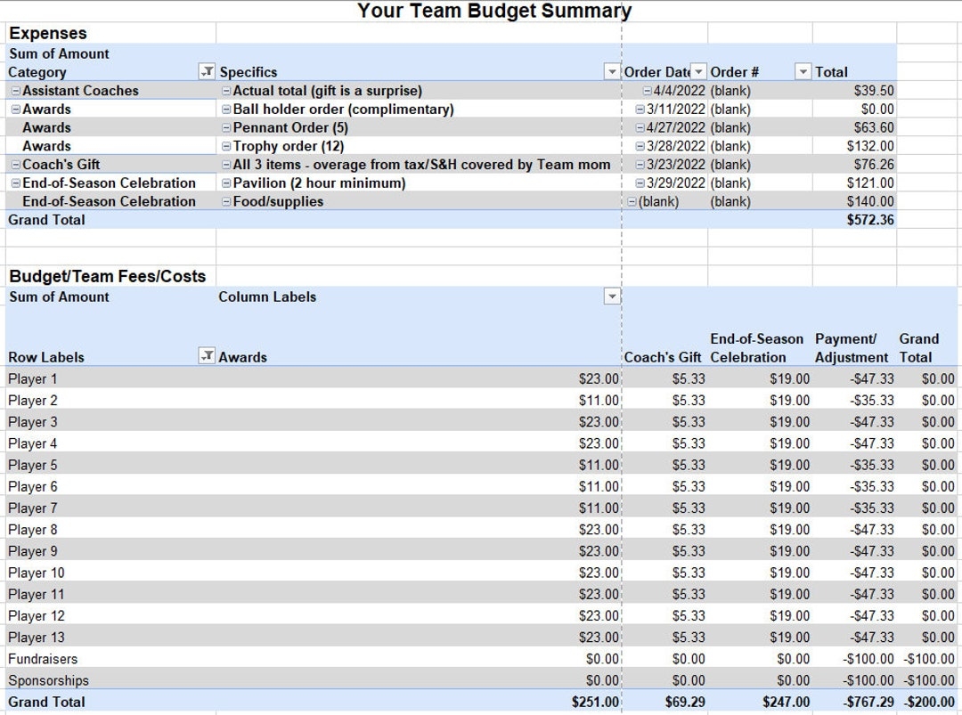 Sports Team Budget Template Sports Budget Template Youth Sports Travel Team Spreadsheet Template Sports Team Manager Budget Spreadsheet Etsy UK