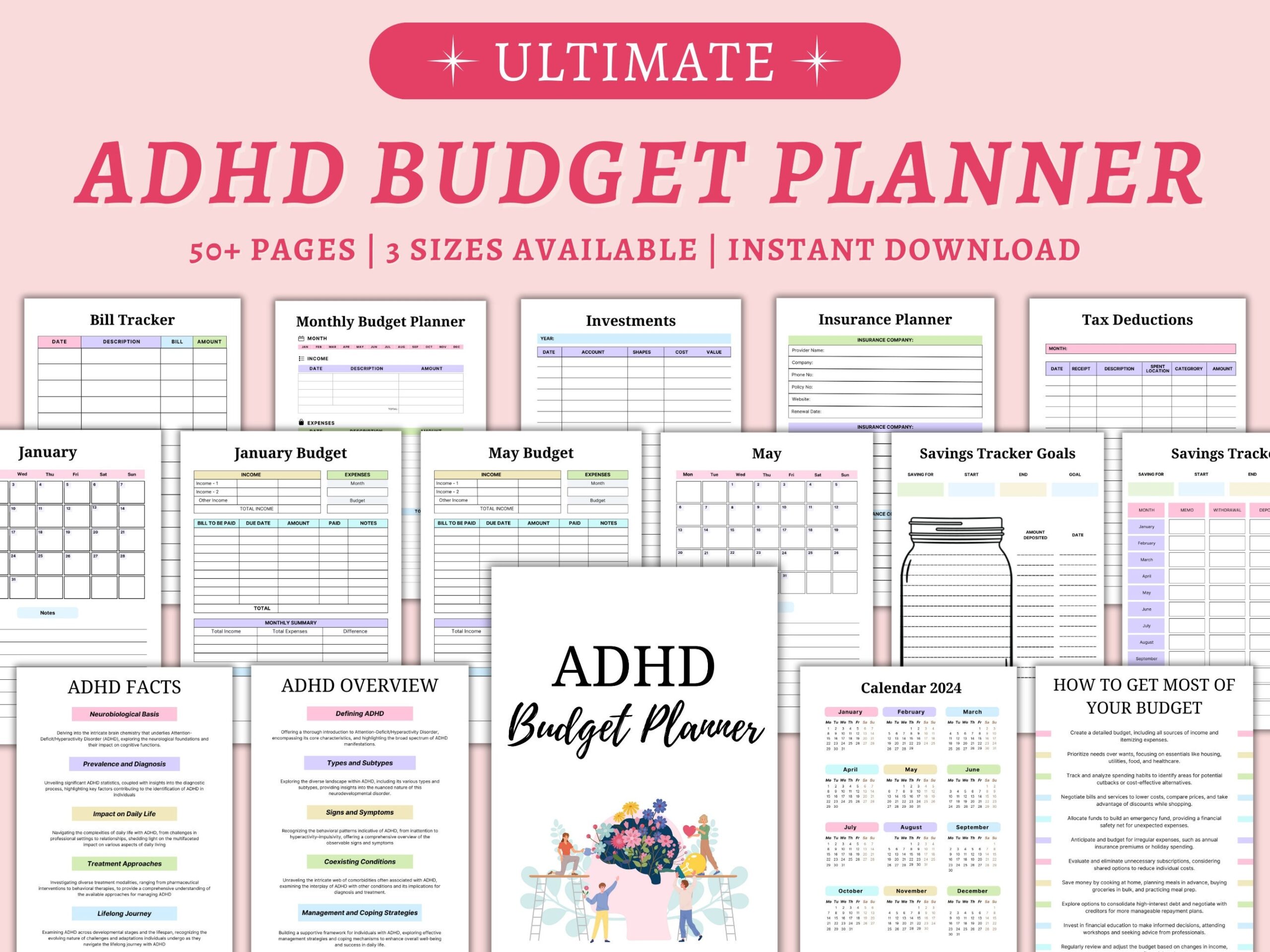 Digital printable ADHD Budget Sheet Adult Adhd Downloads