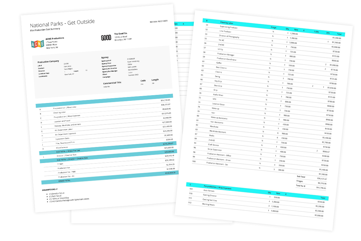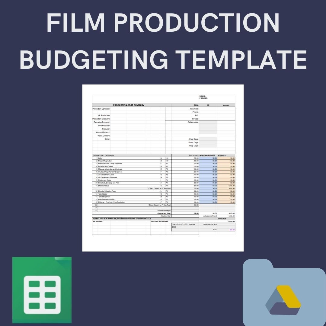 Film Production Bid U0026 Budgeting Template Etsy