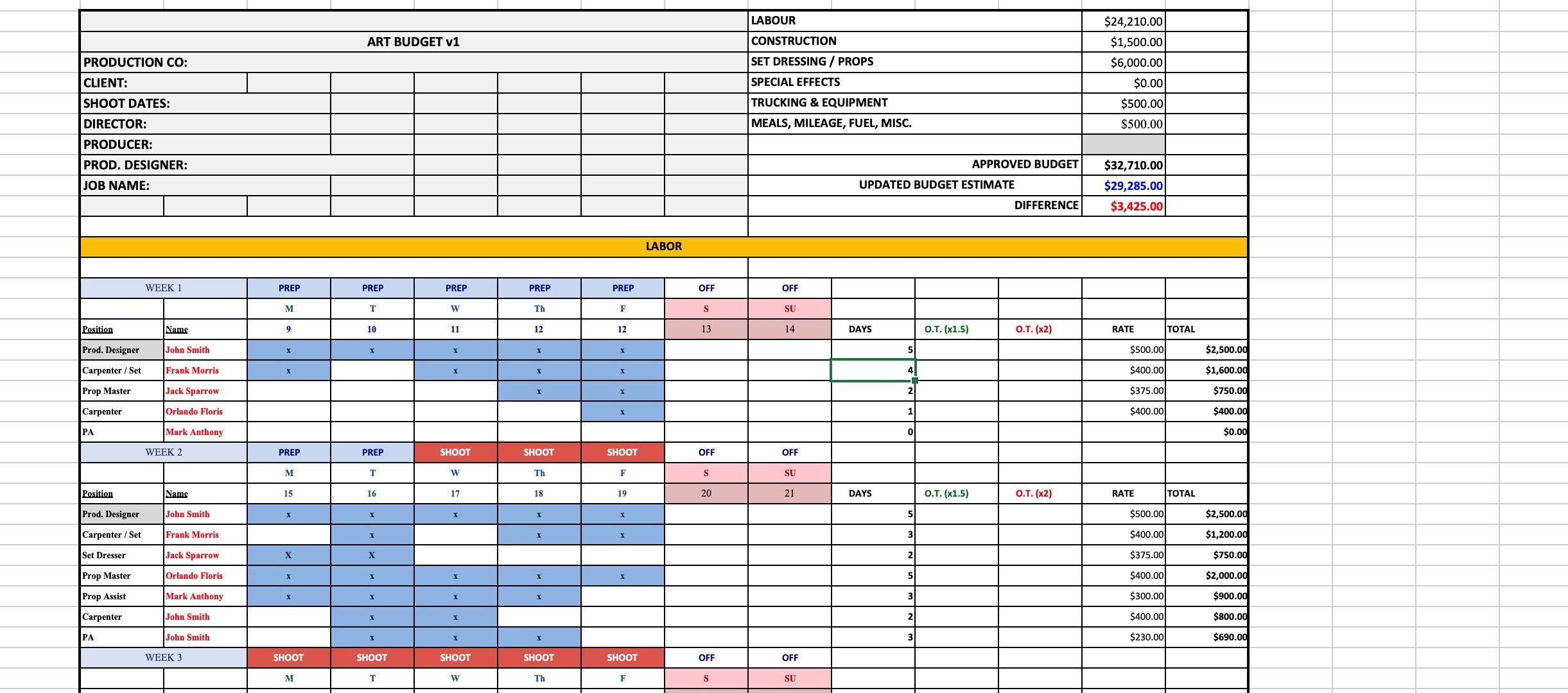 Film Art Budget Template Film Production Art Budget Professional Art Budget For Projects Film Tv Video Commercials Project Management Etsy