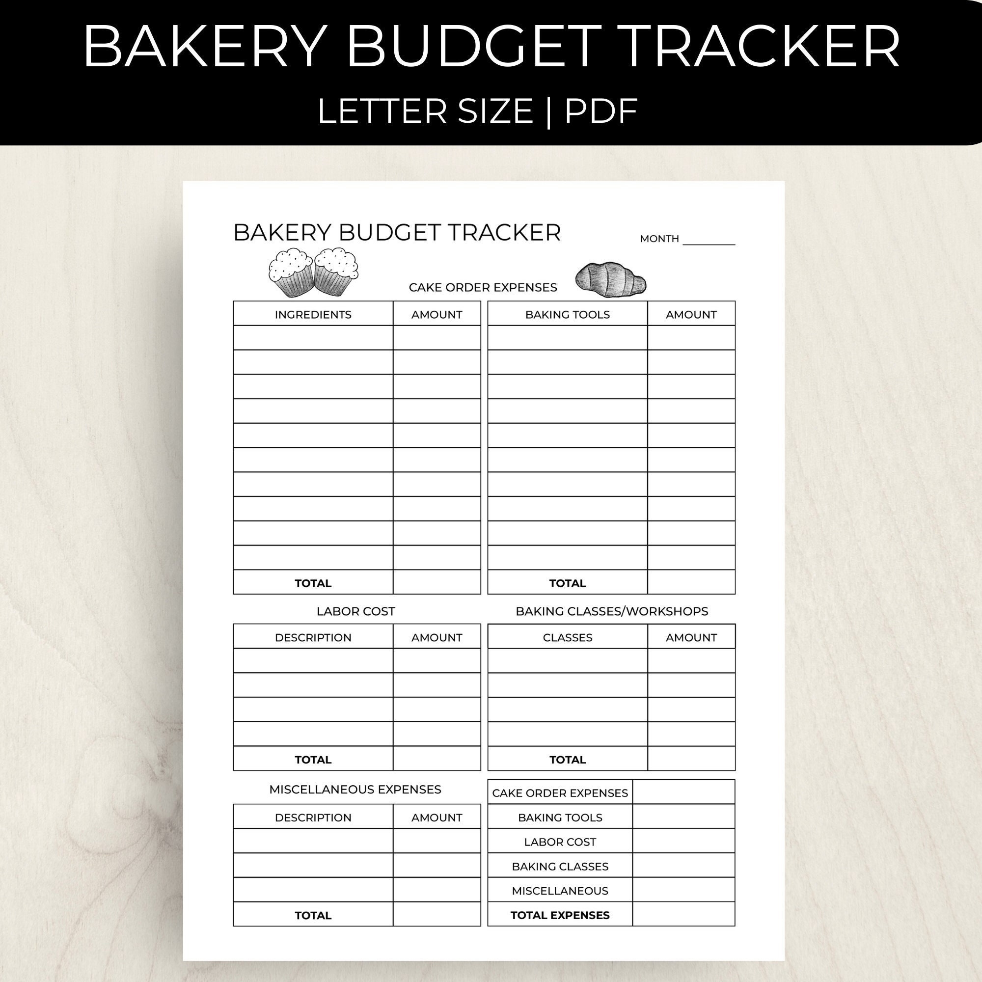 Bakery Budget Tracker Printable Fillable Monthly Budget Planner