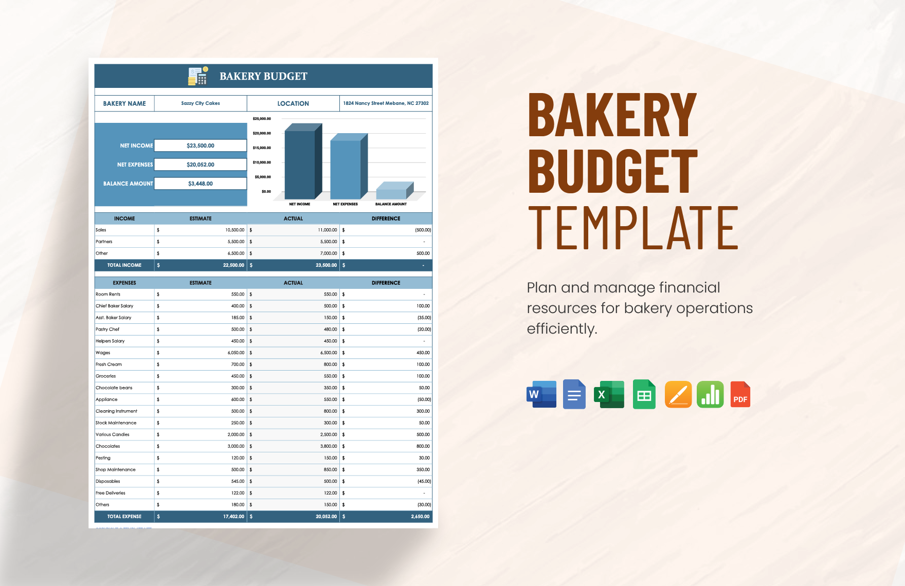 Bakery Budget Template In Google Docs Word Pages PDF Excel