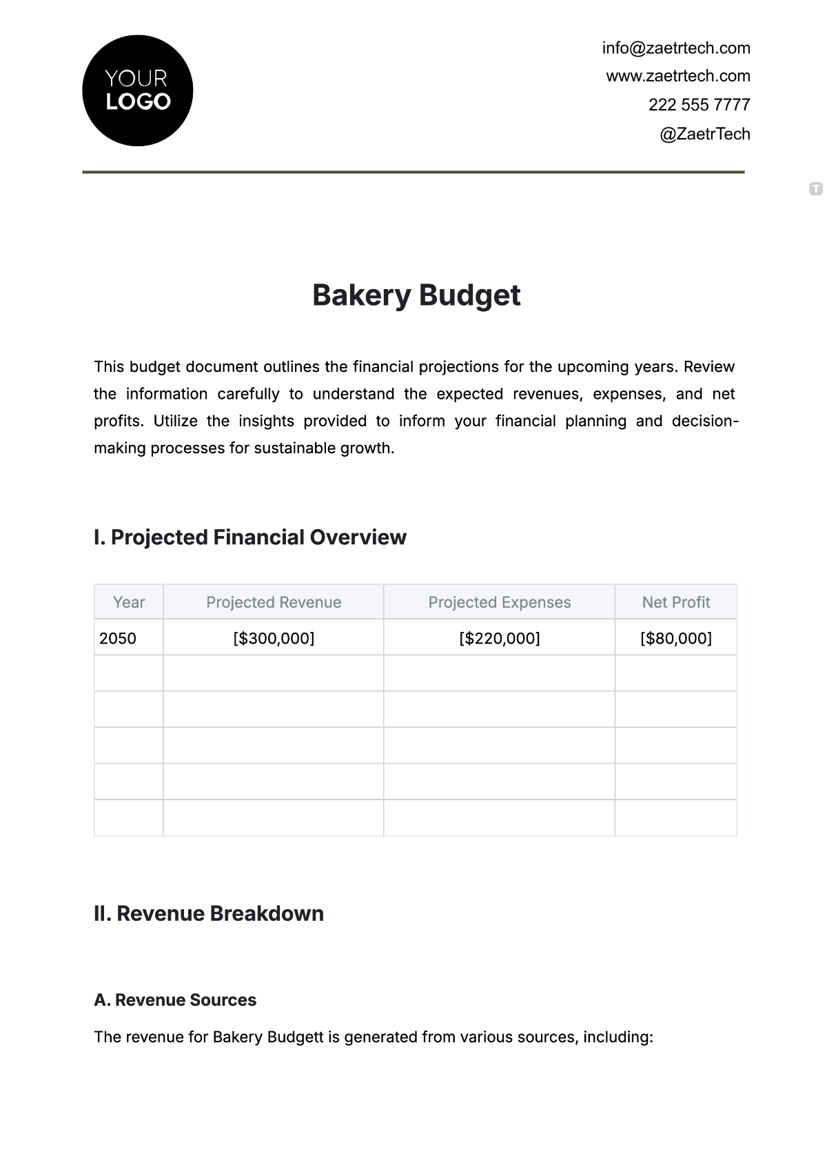 From tracking ingredient costs to monitoring labor expenses, a bakery budget template can help you stay within your financial limits and avoid overspending. It’s a valuable tool that can provide insights into your business’s financial performance and help you make adjustments as needed.
