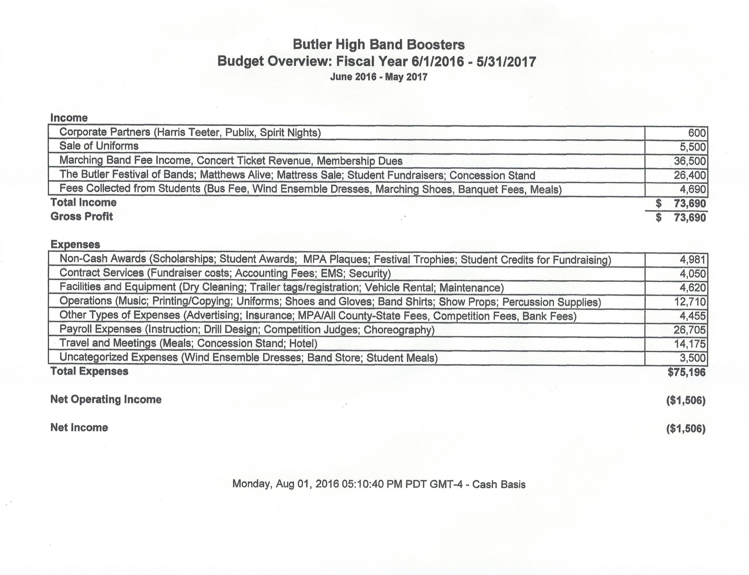 2016 2017 Band Booster Budget Template