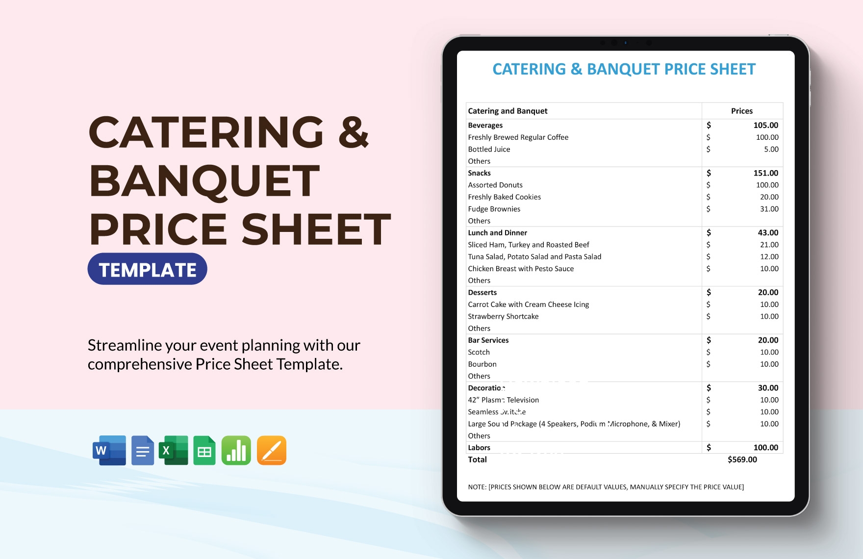 Catering U0026 Banquet Price Sheet Template In Google Docs Word Apple Numbers Pages Excel Google Sheets Download Template