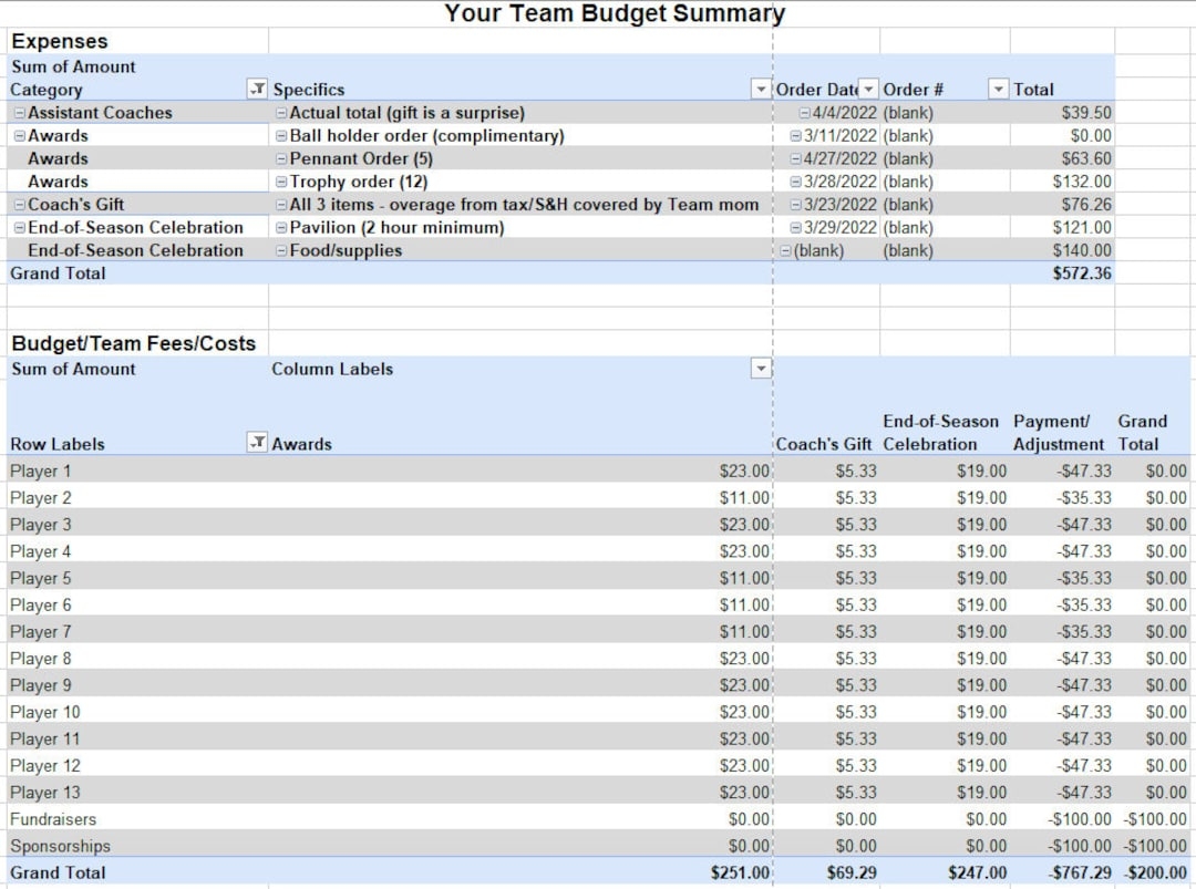 Sports Team Budget Template Etsy