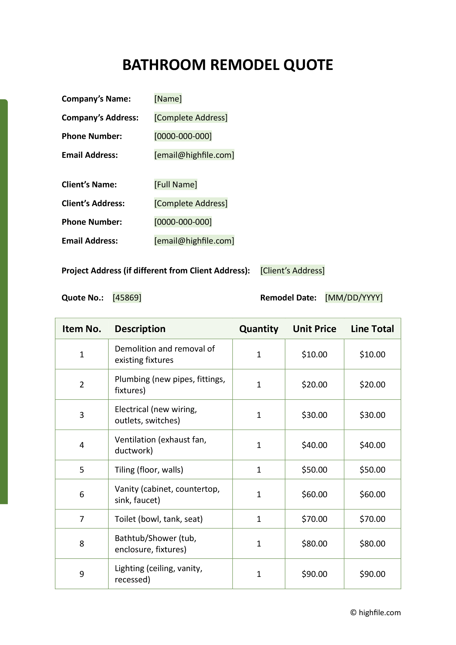 Free Bathroom Remodel Quote Template Highfile