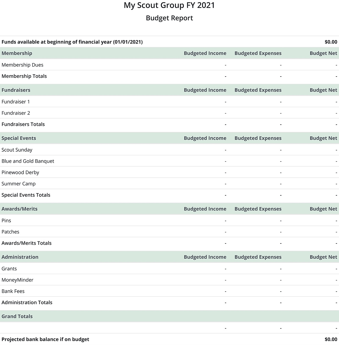Booster Club Budget Template