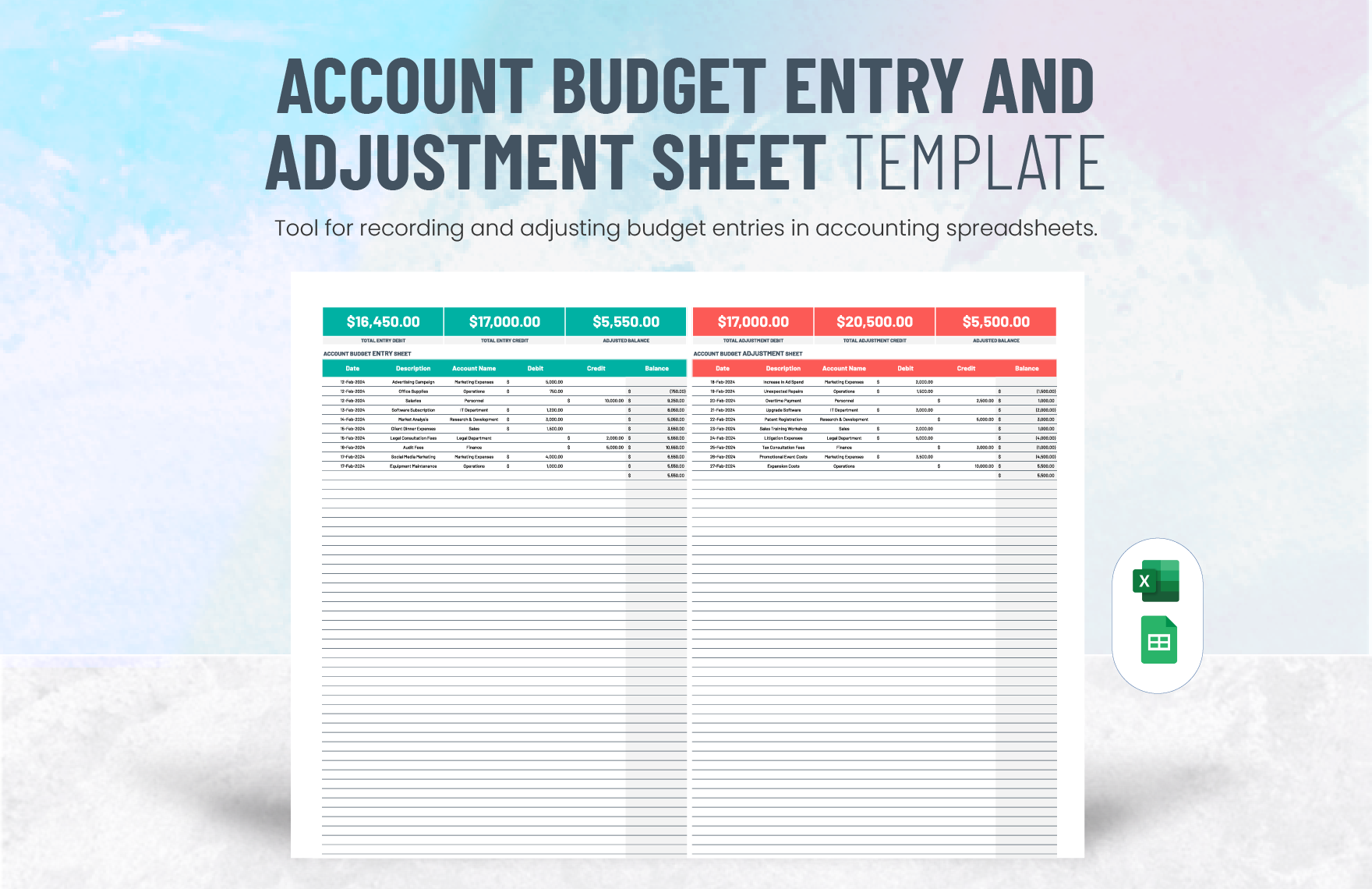 Account Budget Entry And Adjustment Sheet Template In Excel Google Sheets Download Template