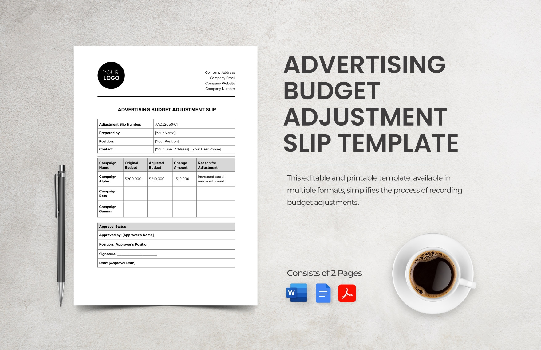 Advertising Budget Adjustment Slip Template In Word PDF Google Docs Download Template