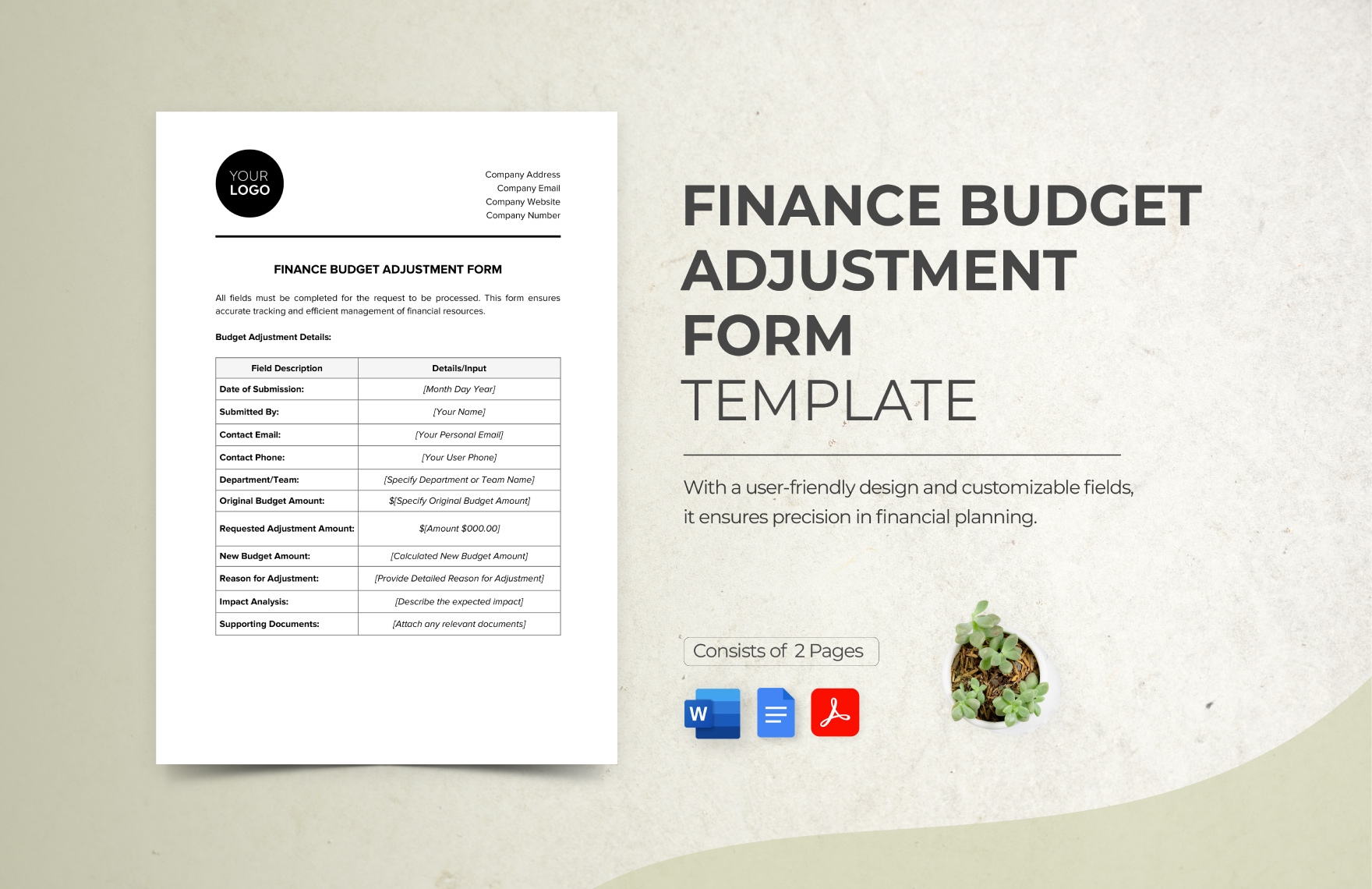 Finance Budget Adjustment Form Template In Word PDF Google Docs Download Template