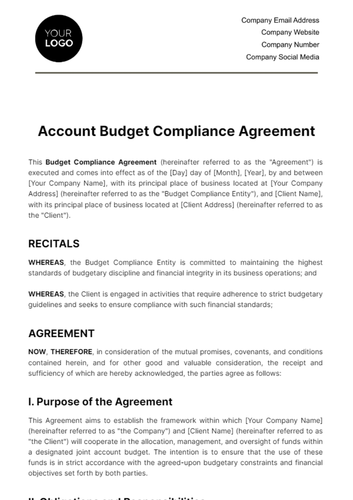 Free Account Budget Compliance Agreement Template To Edit Online