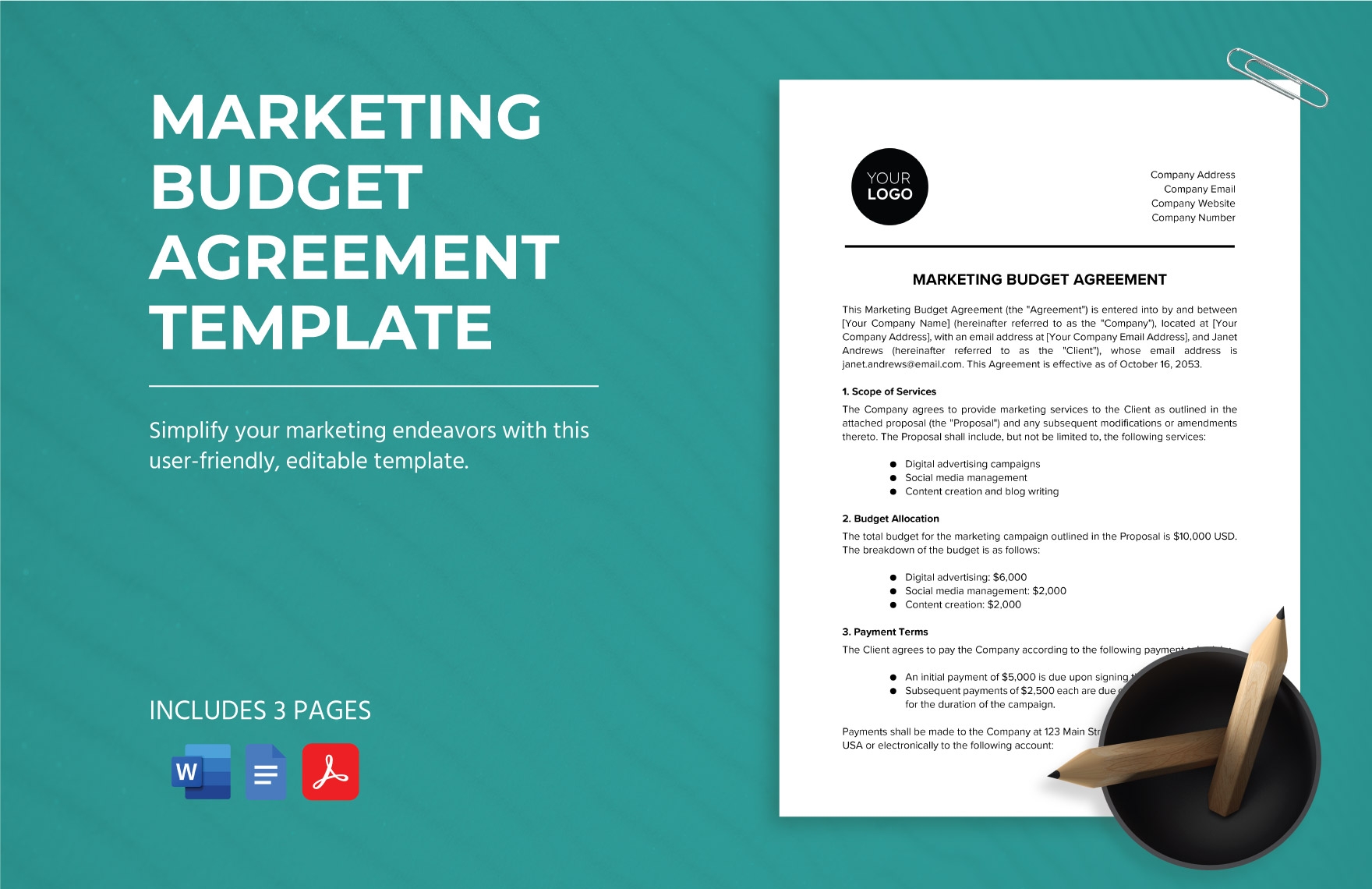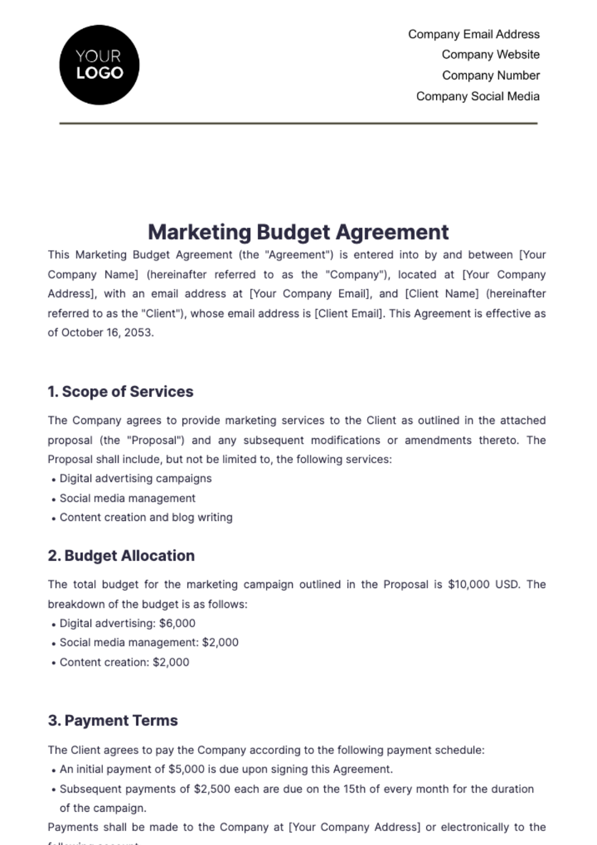 Marketing Budget Agreement Template In Word PDF Google Docs