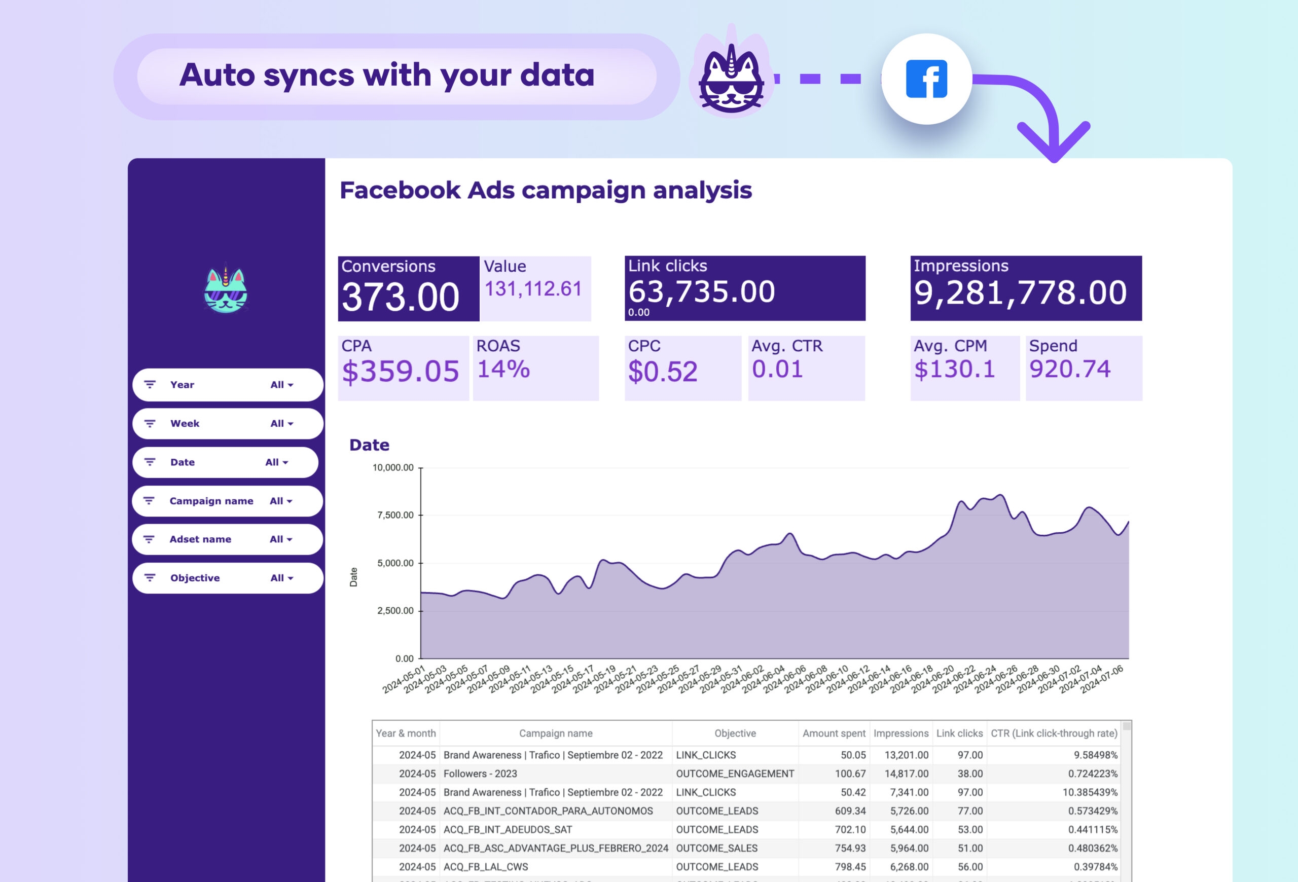 Facebook Ads Budget Tracking And Pacing Dashboard Template For