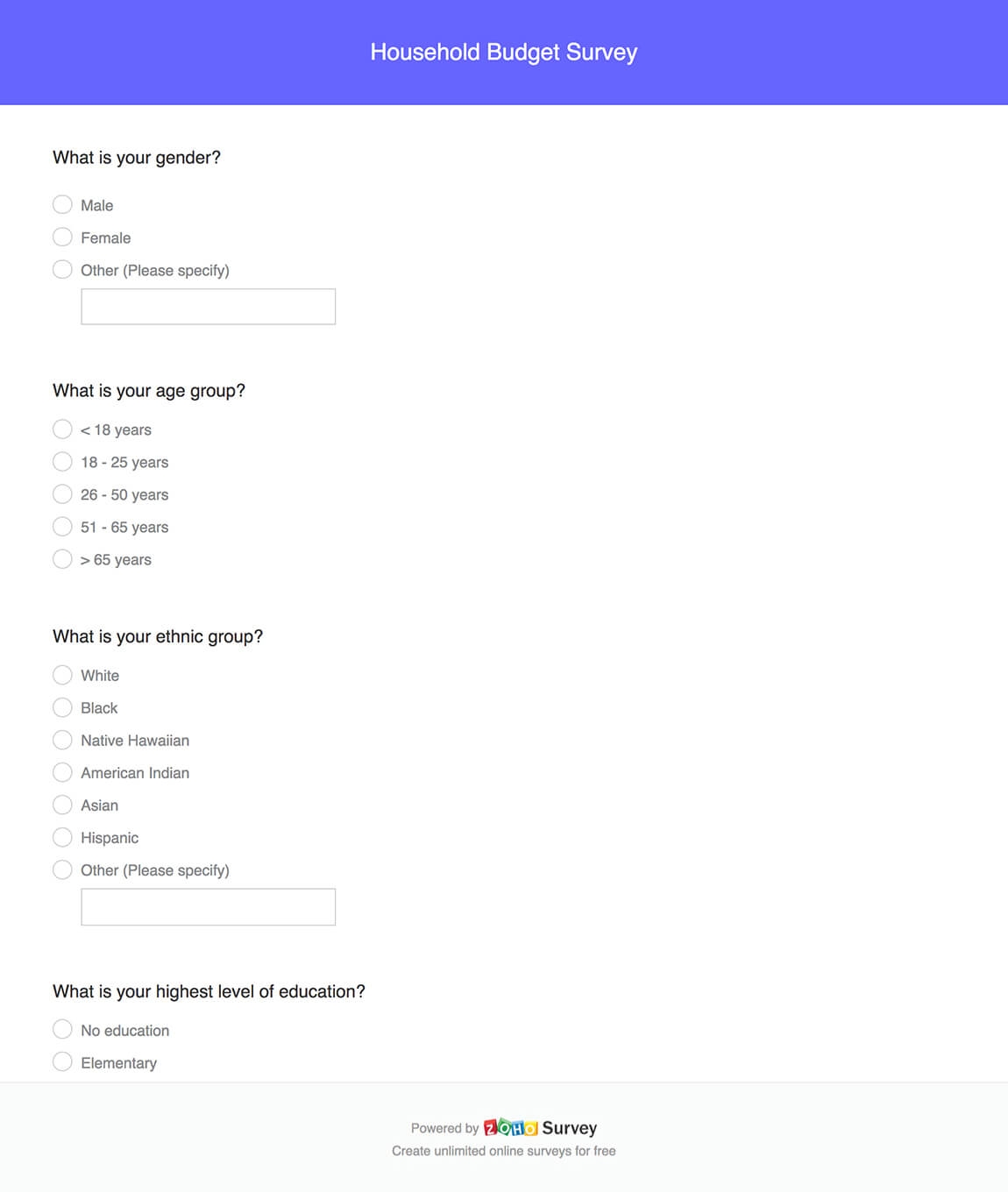 Household Budget Survey Forms Free Zoho Survey Template