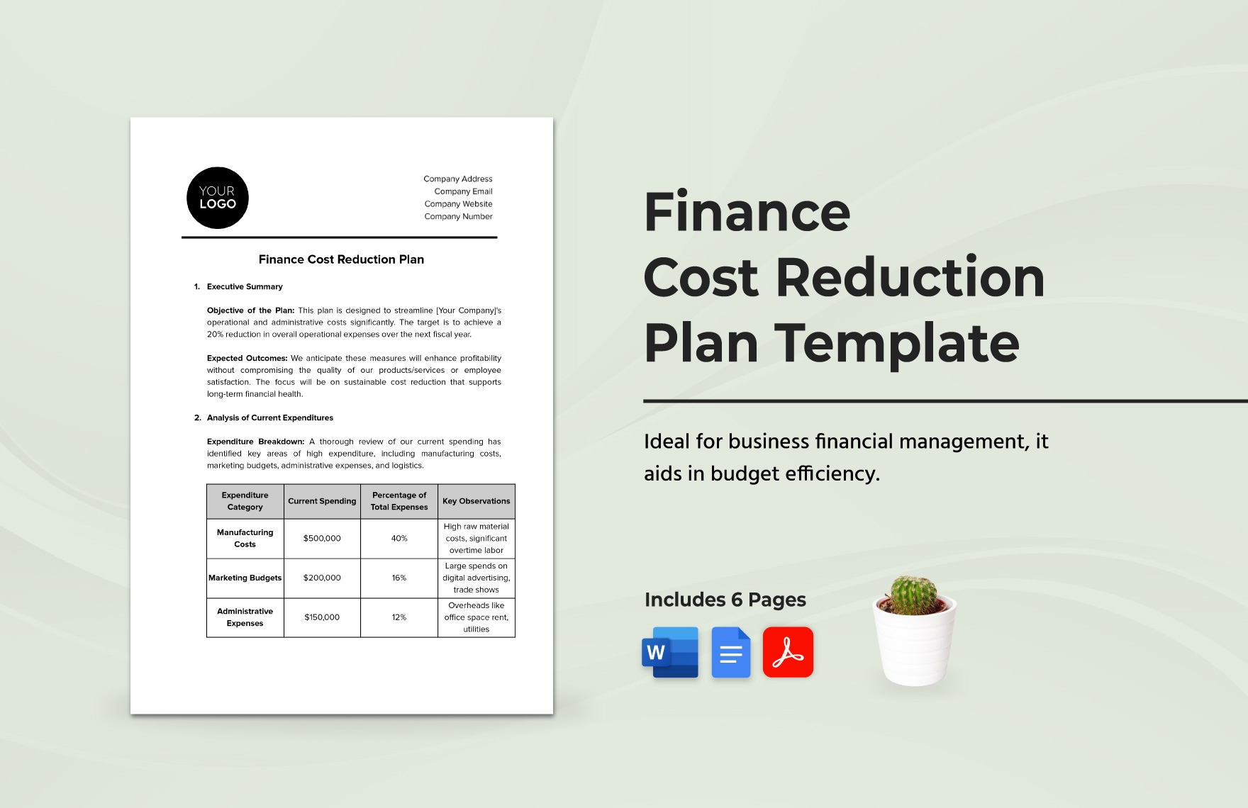 Finance Cost Reduction Plan Template In PDF Word Google Docs