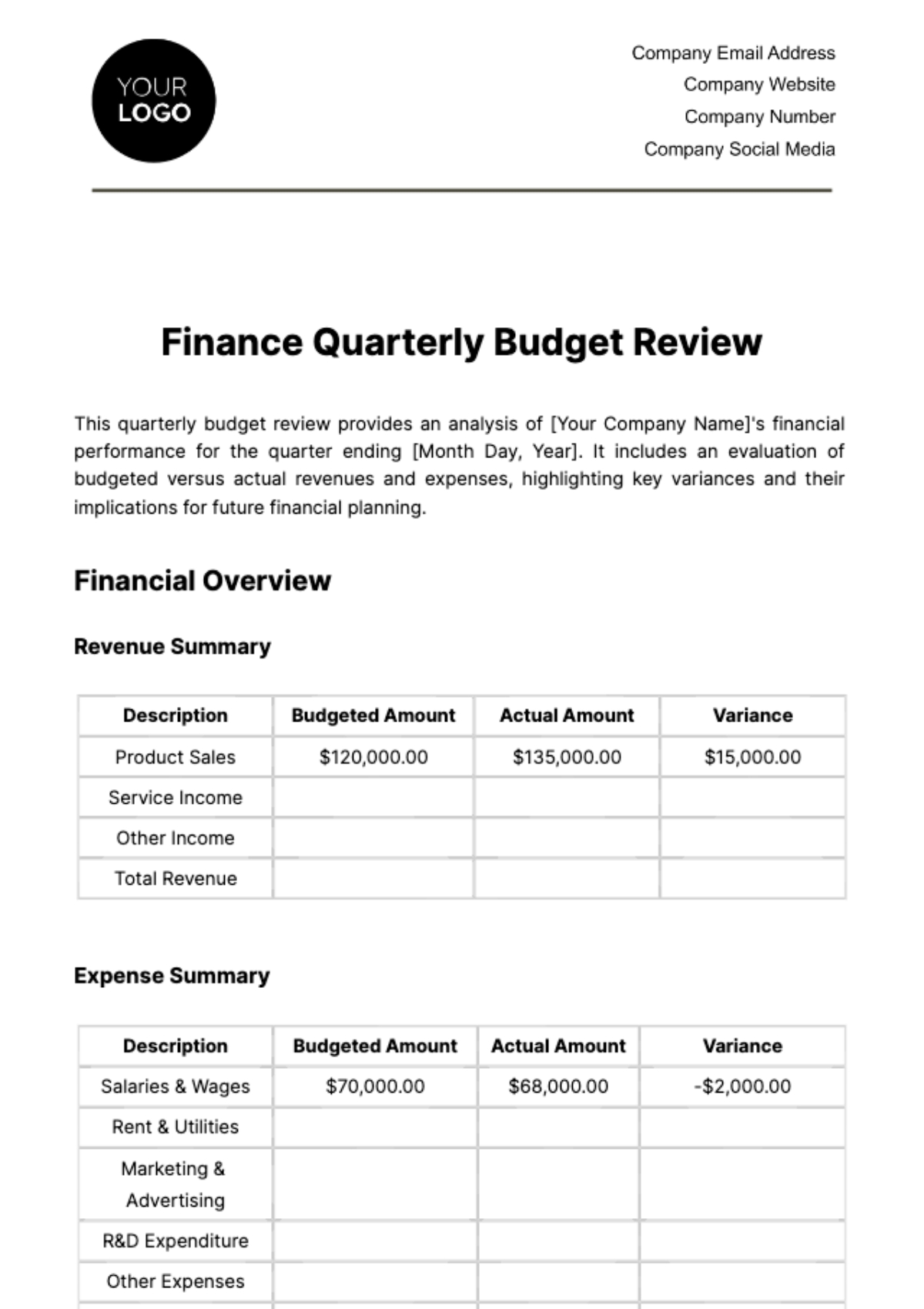 Budget Revision Template: Stay on Top of Your Finances
