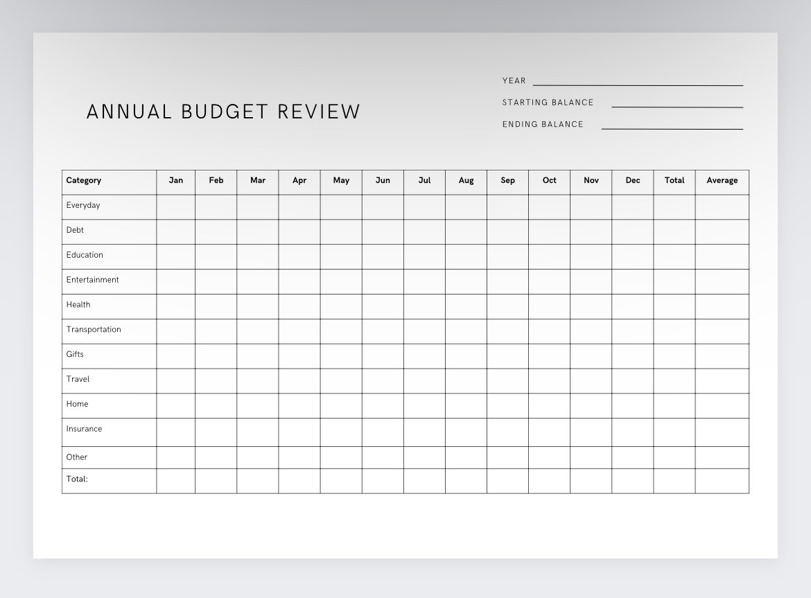 Minimalistic Annual Budget Review annual Budget Planner yearly