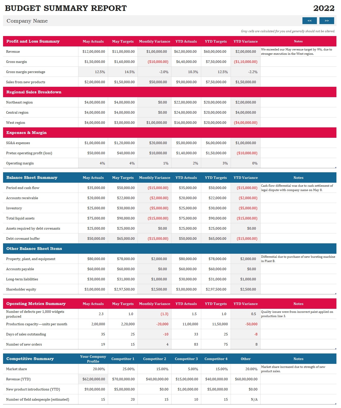 Budget Summary Report Template