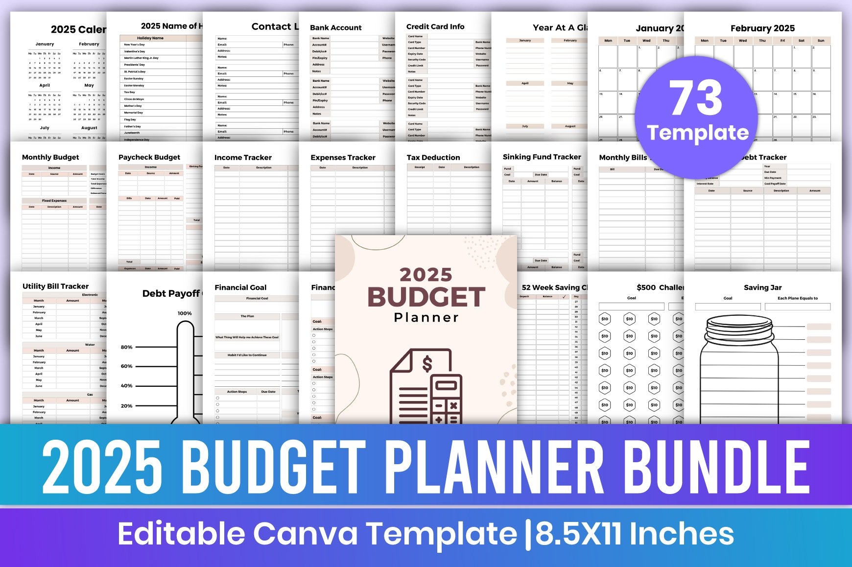 Editable 2025 Budget Planner Bundle Canva Template