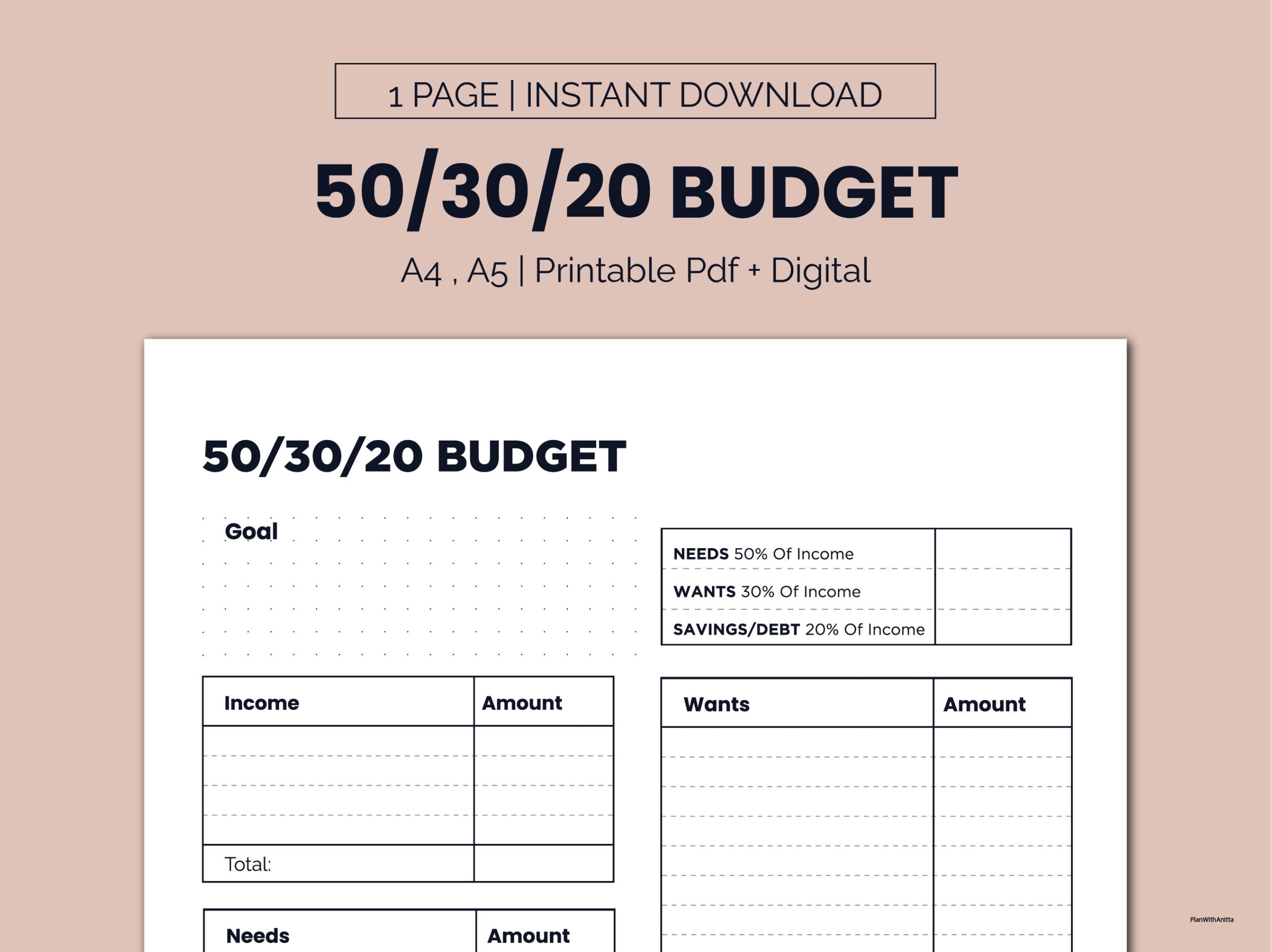 50 30 20 Budget Printable 50 30 20 Budget Easy Monthly Budget Tracker Monthly Budget Template Printable Budget Worksheet US Letter Etsy