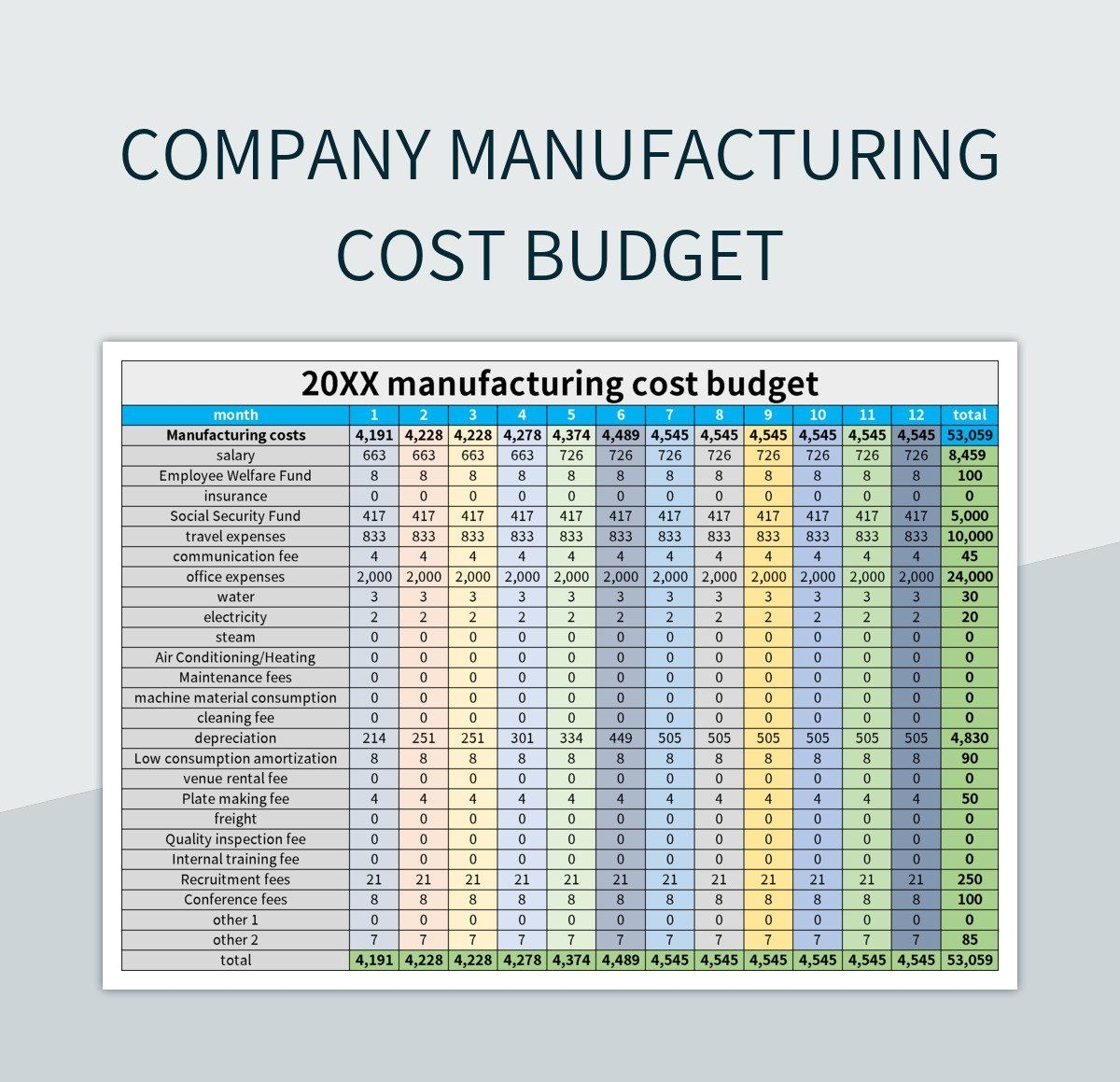 Company Manufacturing Cost Budget Excel Template And Google Sheets