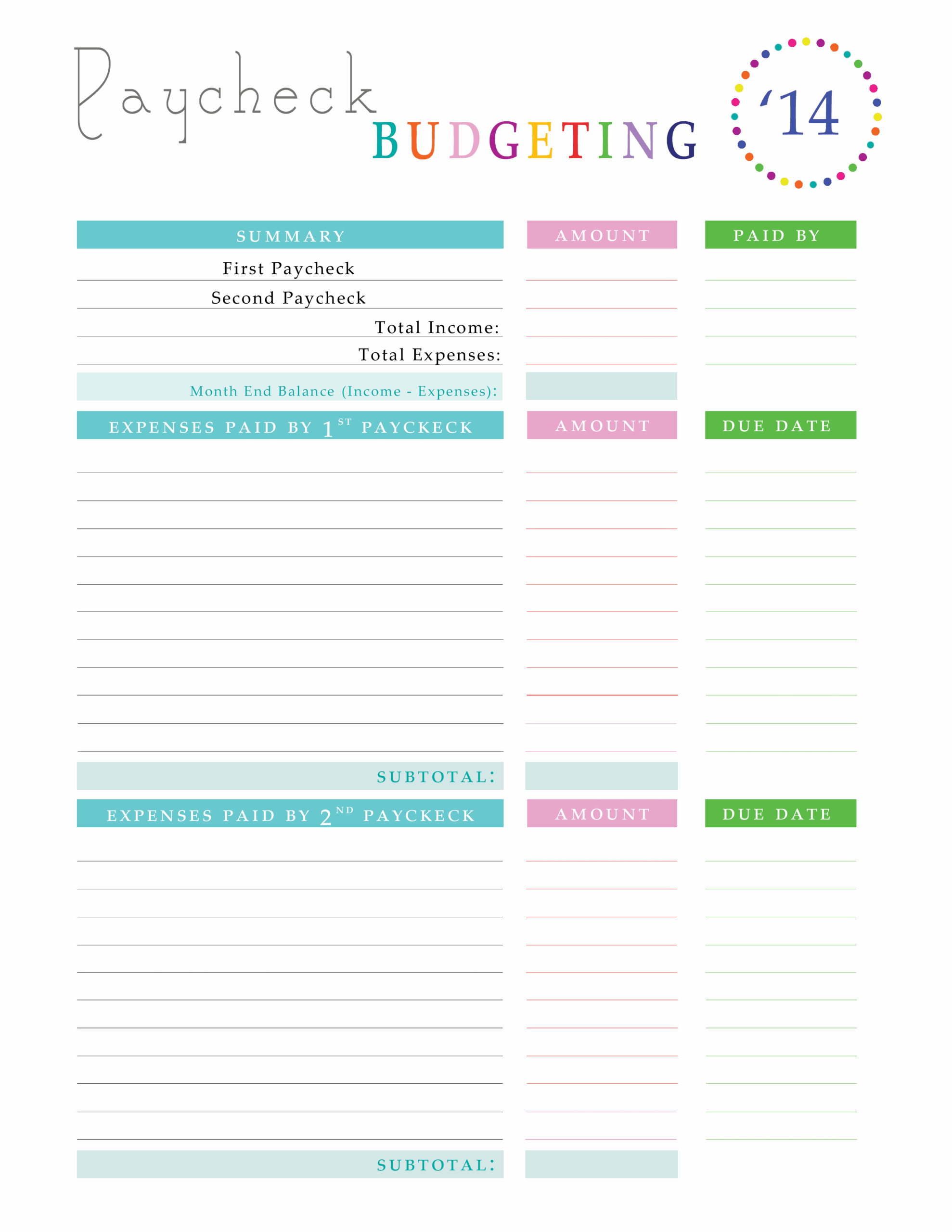 Paying Off Debt Worksheets