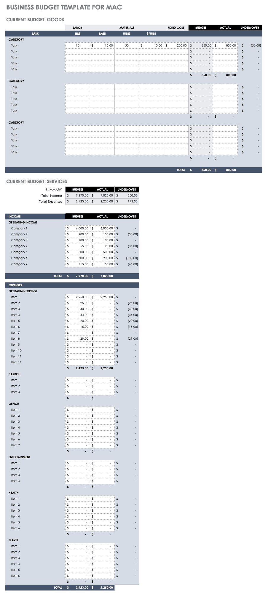 Budget Templates For Mac