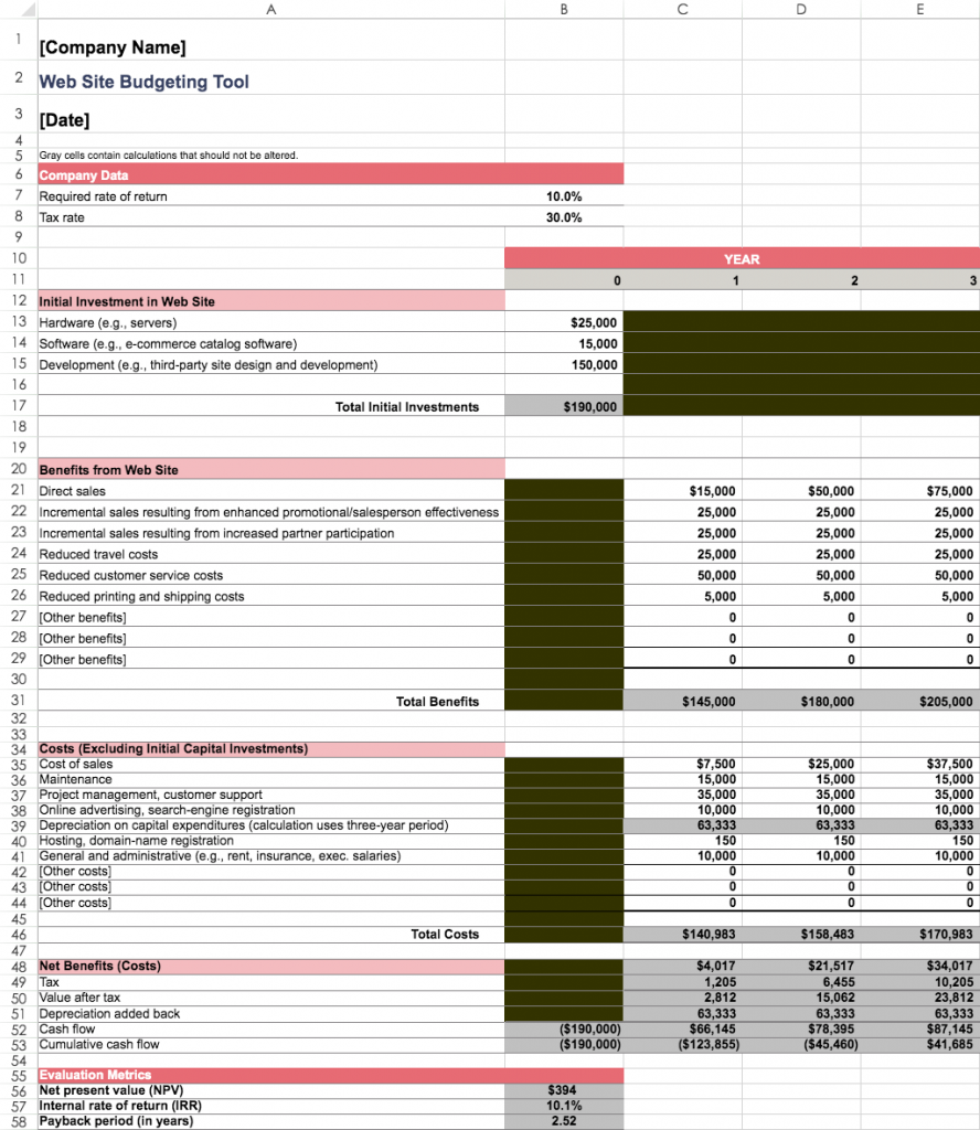 Website Budgeting Template Website Budgeting Worksheet