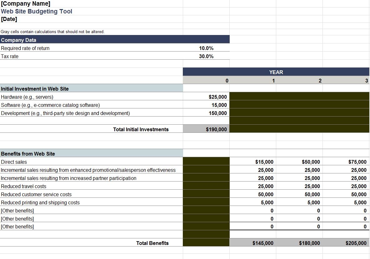 Web Site Budget Tool Excel Template