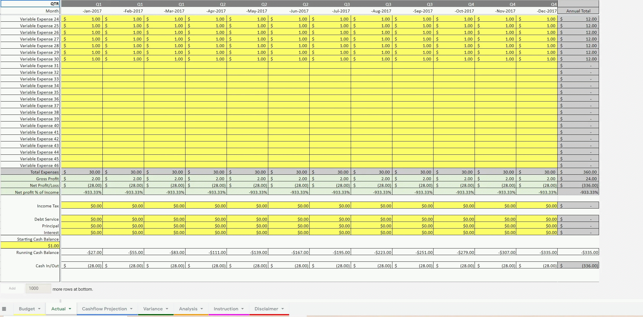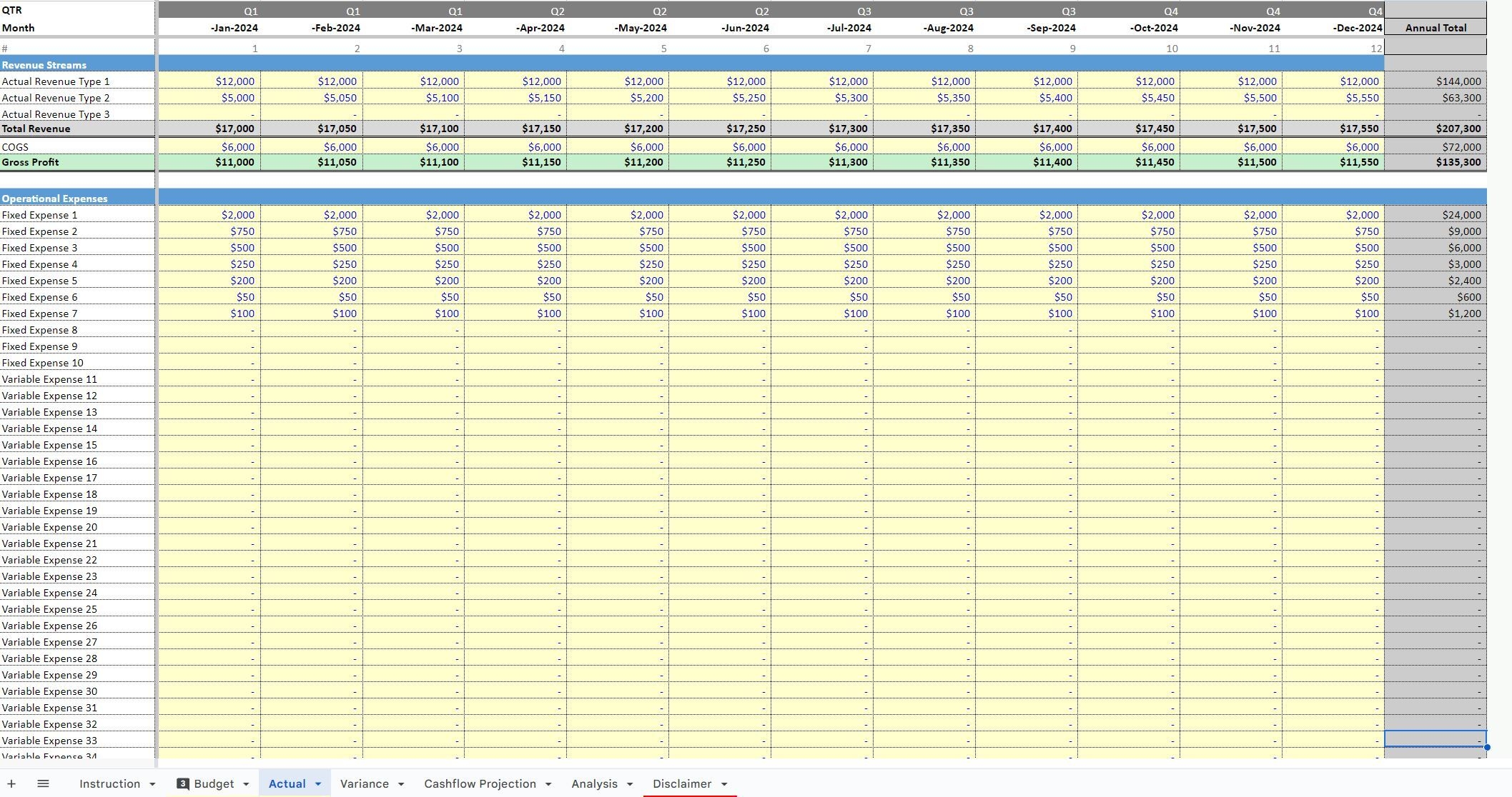 Cash Flow Budget Vs Actual Template