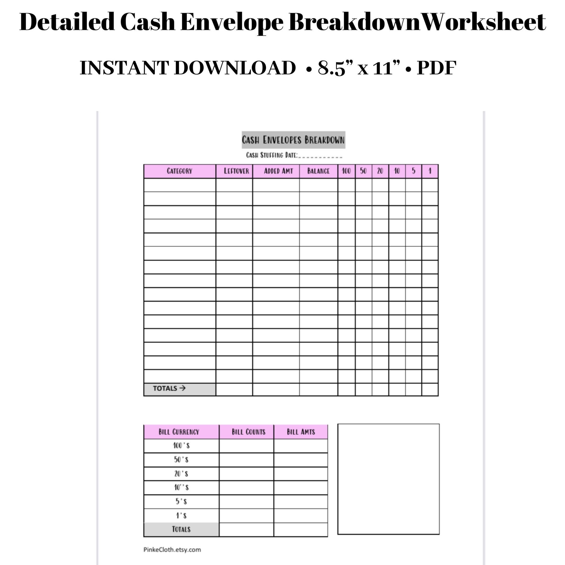 Cash Envelope Breakdown Worksheet Cash Stuffing Spending Cash PDF Budget Insert 8 5 X 11 INSTANT DOWNLOAD Etsy
