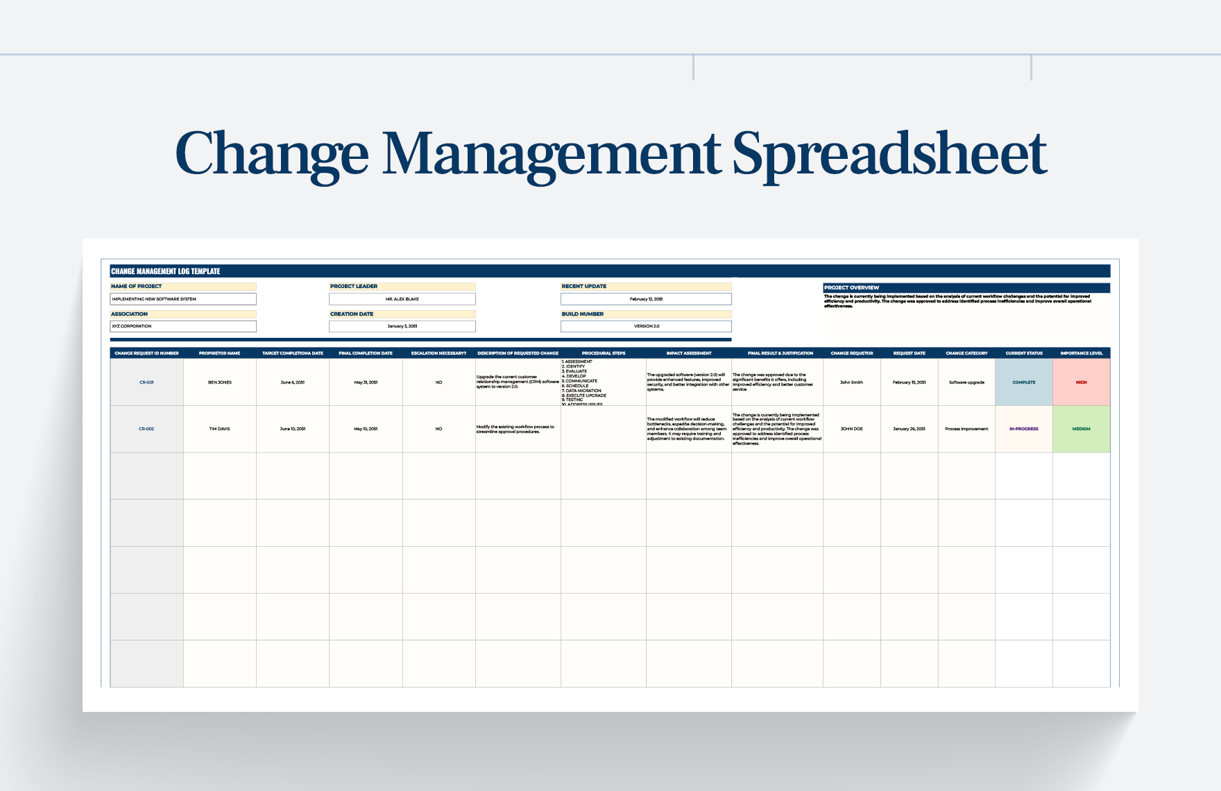 Change Management Spreadsheet In Excel Google Sheets Download