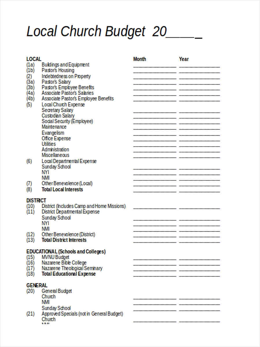FREE 10 Church Budget Form Samples PDF MS Word Google Docs Excel