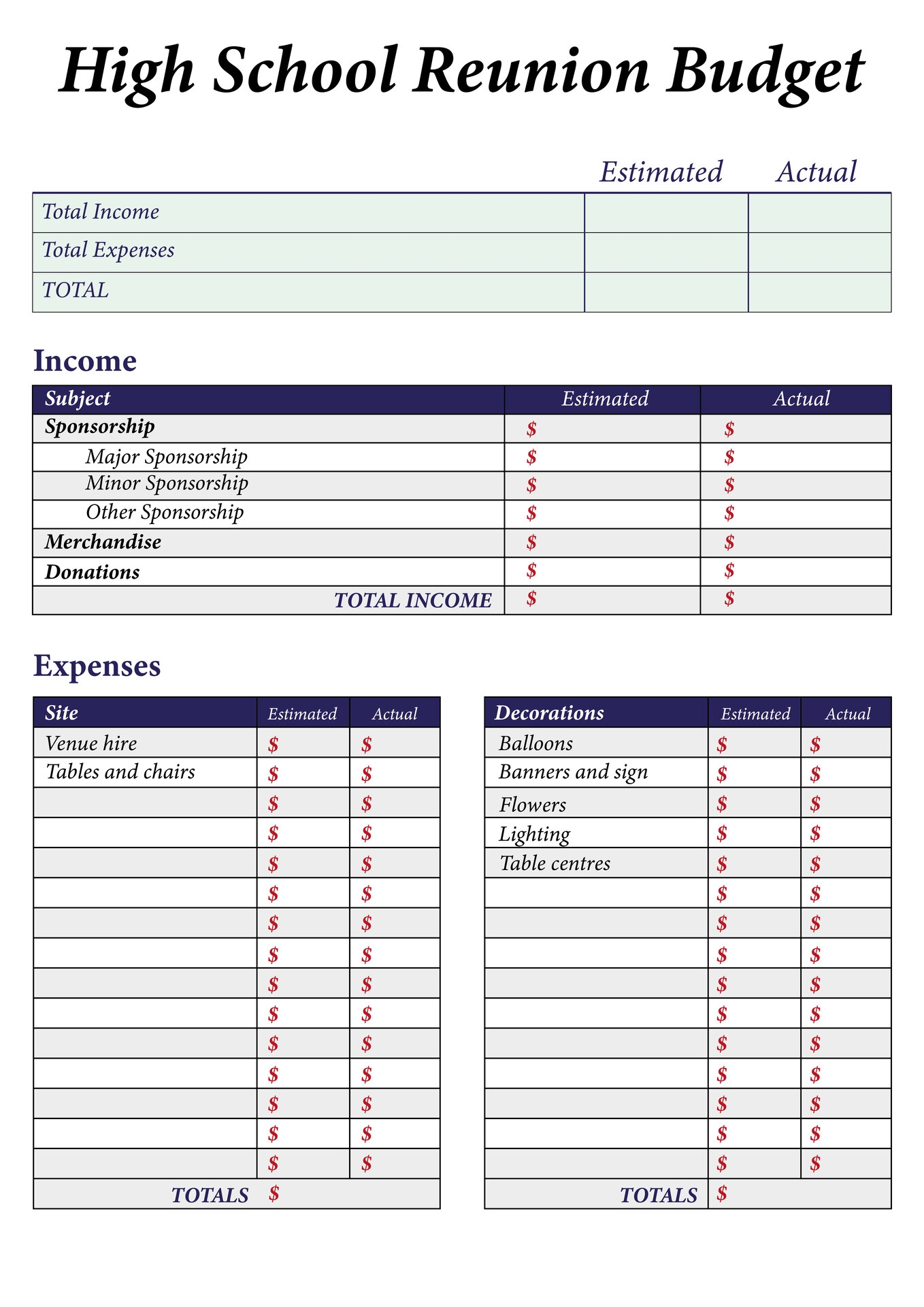 Class Reunion Budget Template