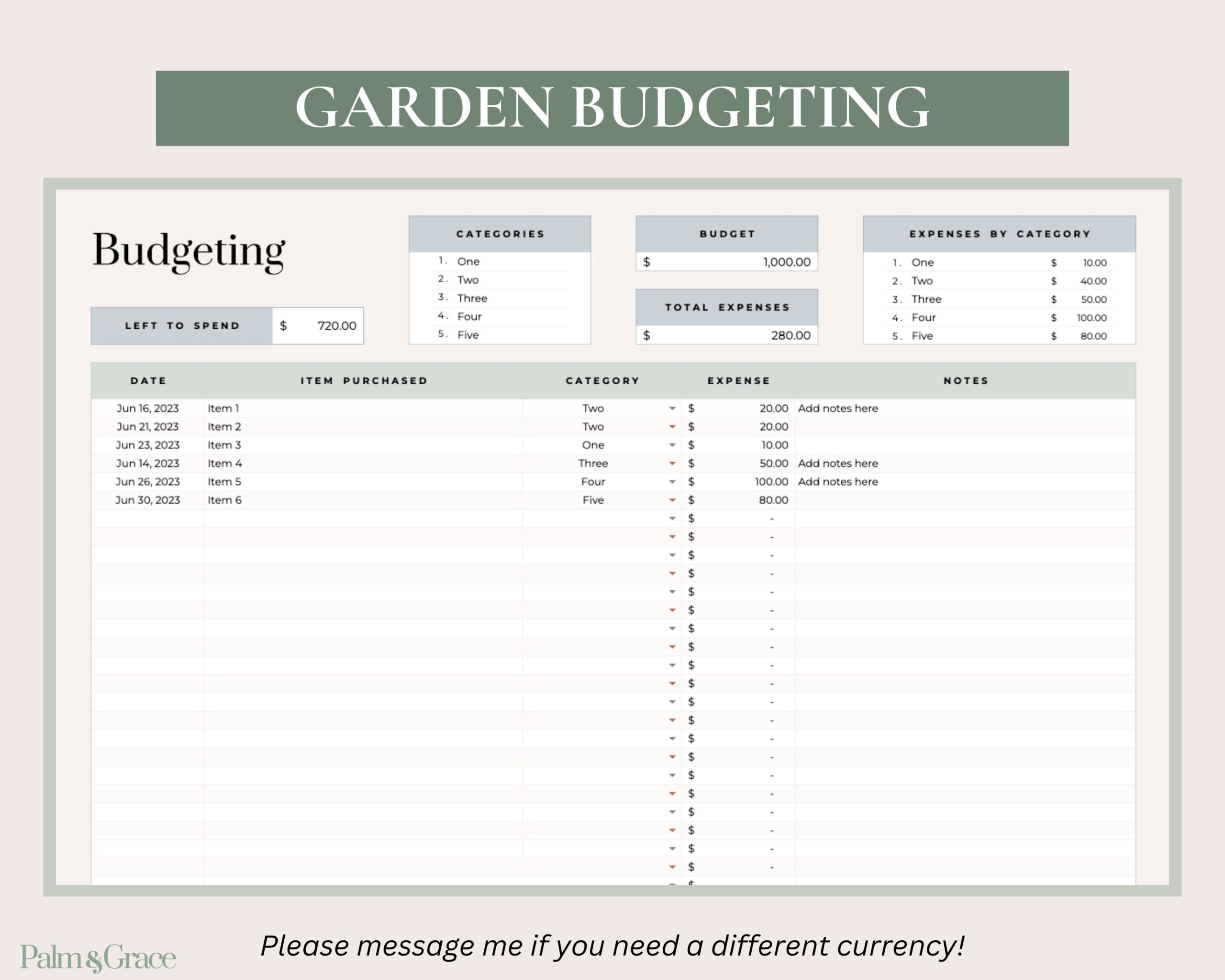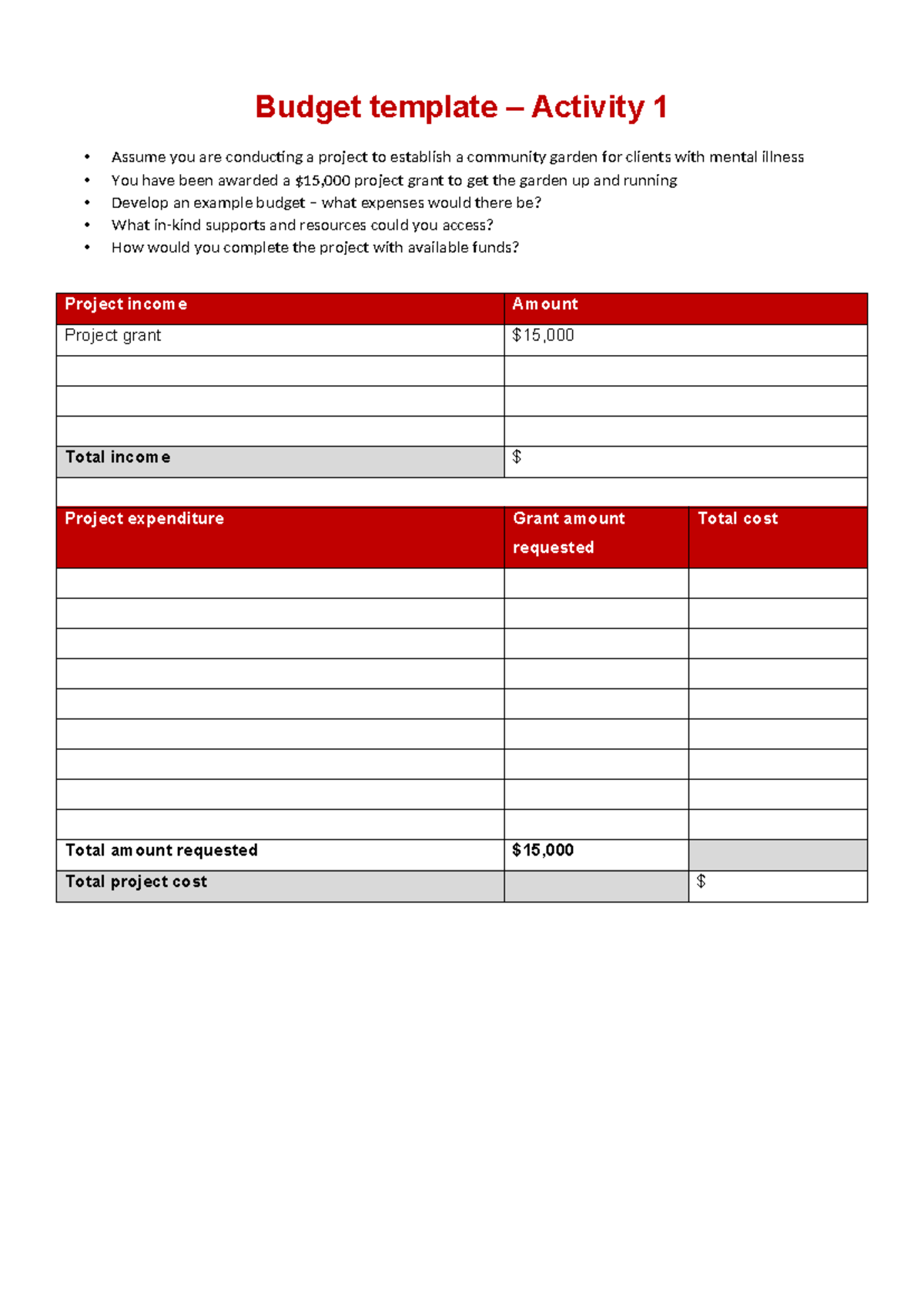 Community Garden Budget Template