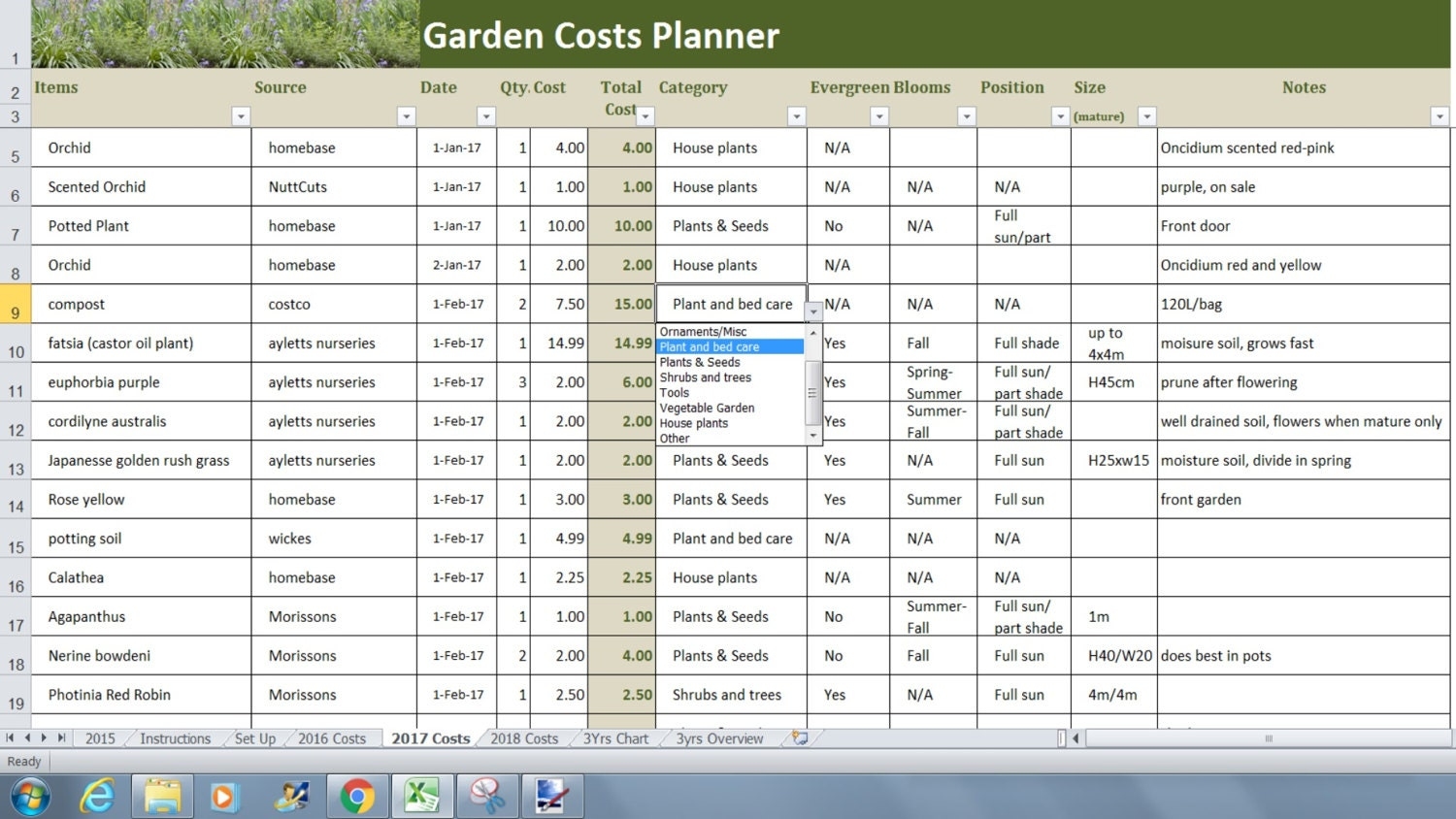 Garden Costs Planner Excel Template Garden Budget Tracker Spreadsheet Plant Log Agenda Journal Etsy