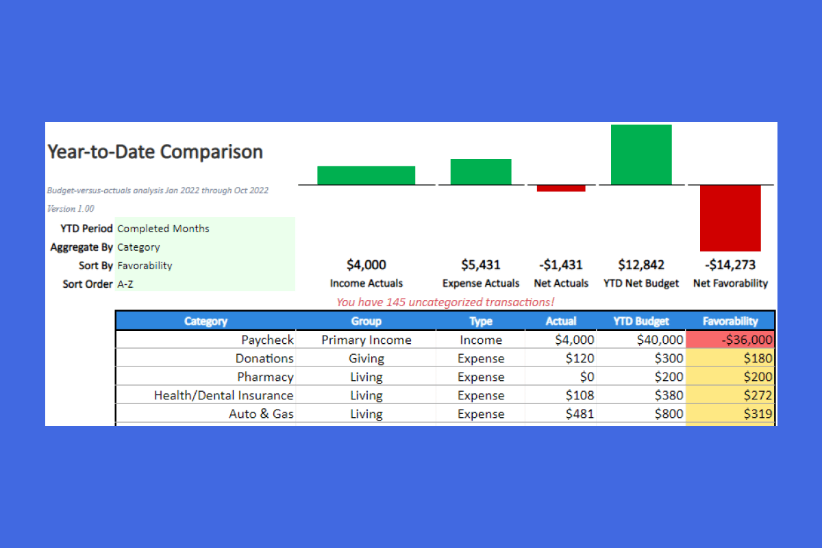 Year to Date Comparison Template For Microsoft Excel Tiller