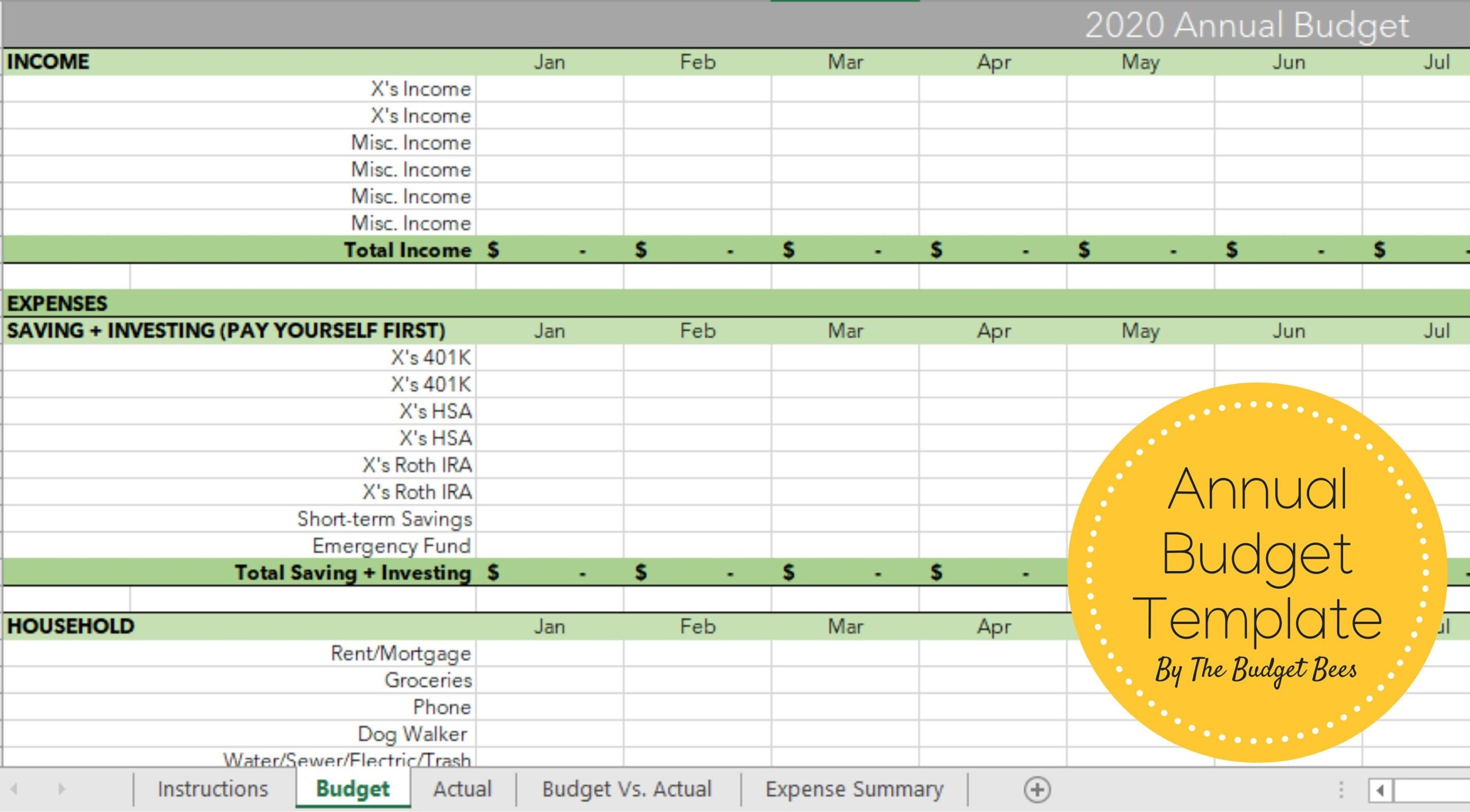 Annual Budget Template Includes Actual Vs Budget Comparison And