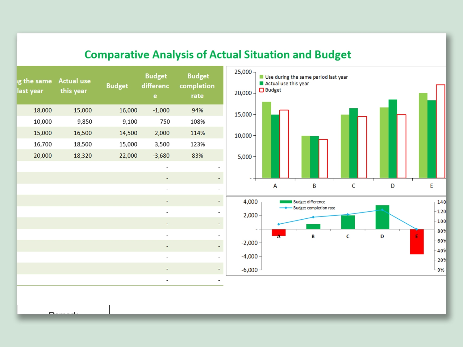 EXCEL Of Comparative Analysis Of Actual Situation And Budget xlsx