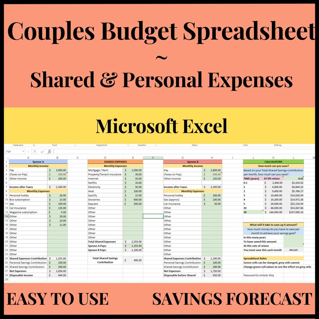 Couples Budget Spreadsheet Shared And Personal Expense Tracker Savings Forecast U0026 Formulas Digital Download Etsy