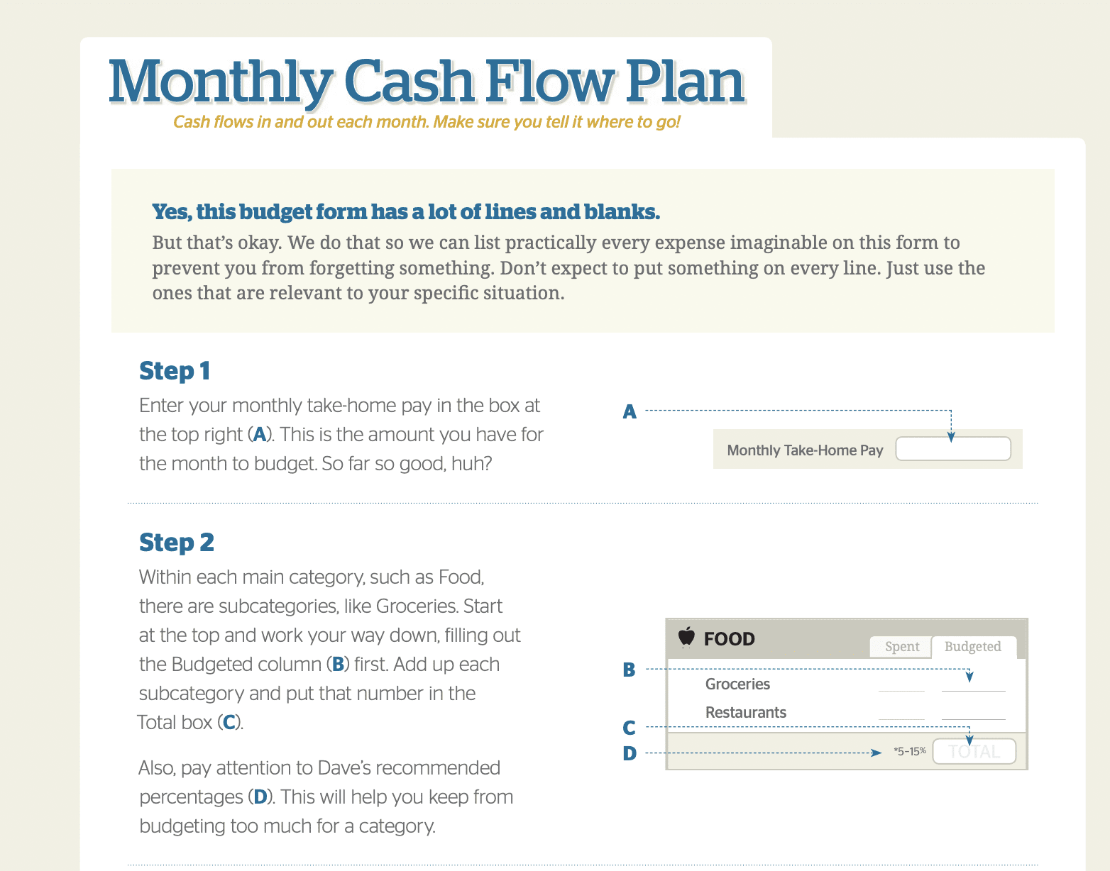 First, download the Dave Ramsey Monthly Budget Template from his website for free. Then, fill in your income sources, fixed expenses, variable expenses, and savings goals. This template will give you a clear picture of where your money is going each month.