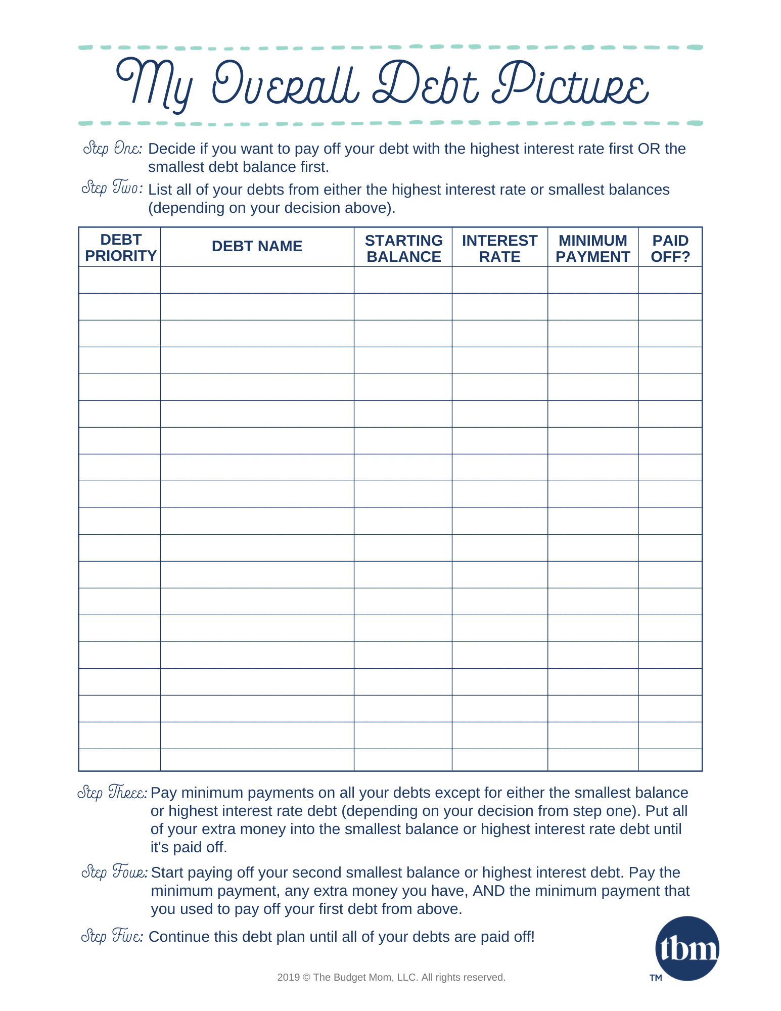 Debt Free Mom Budget Template