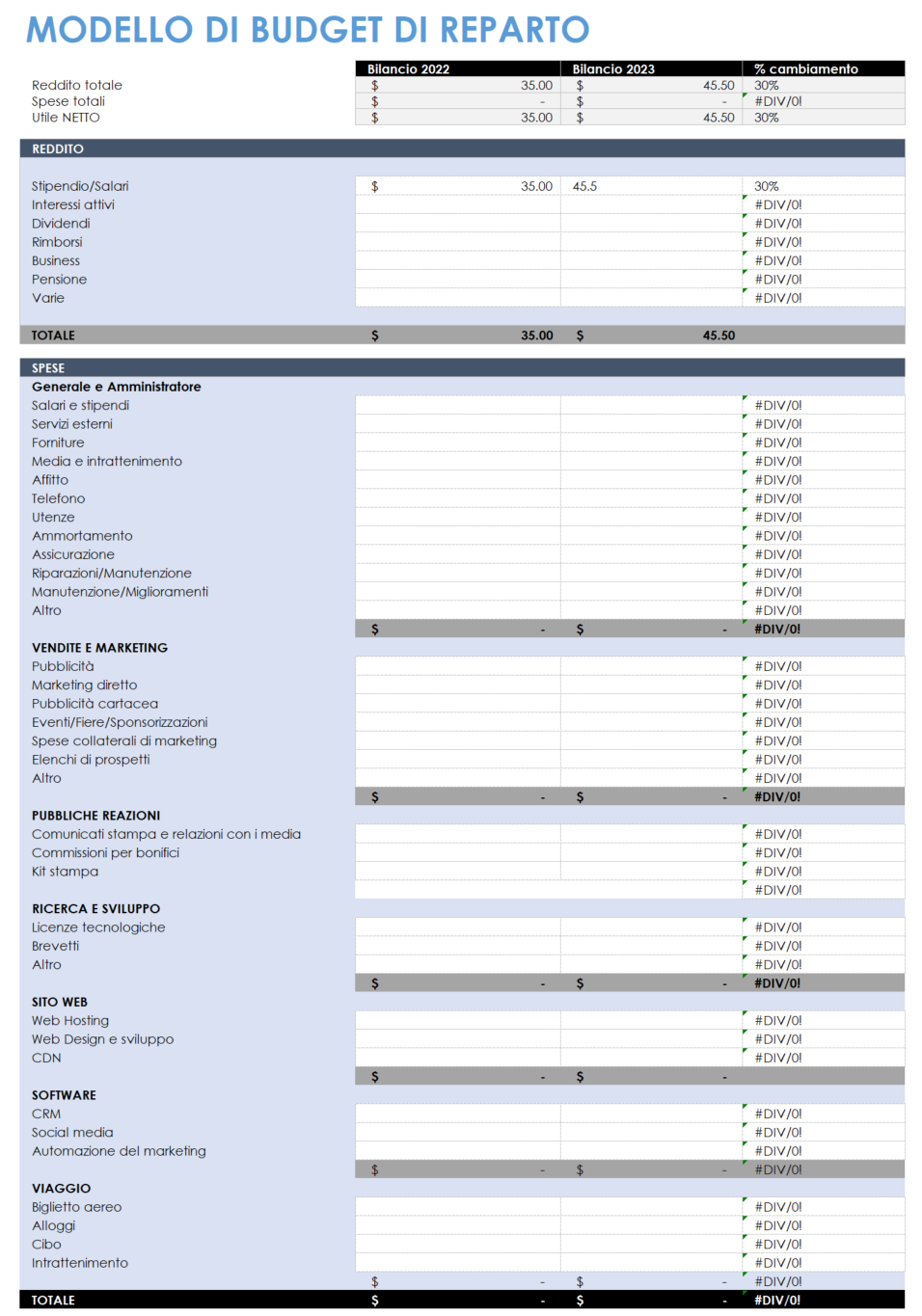 Modello Di Budgeting Spreadsheet Template